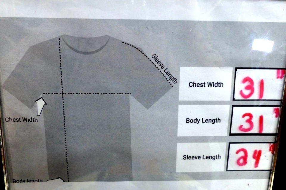 Chest width: 31 inches, Body length: 31 inches, Sleeve length: 24 inches