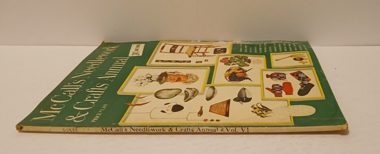 This listing is for an original copy of McCall Needlework Crafts Magazine. This is the 1955 Annual issue. The cover has minor shelf wear. The pages are clean. There are no missing or torn pages. Pages may have water stains, and or some yellowing due to age. Some edges may be frayed. There is some tearing along the spine.