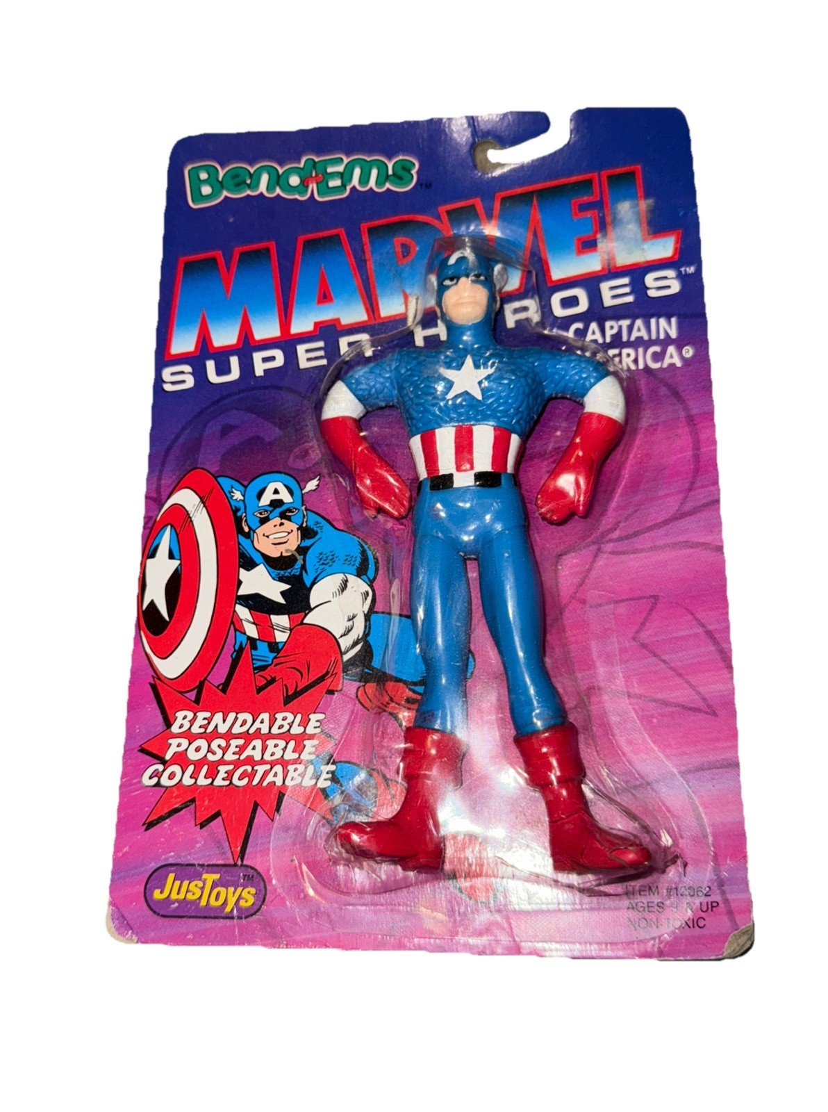 MARVEL BEND-EMS CAPTAIN AMERICA 6" BENDABLE ACTION FIGURE JusToys 1991 NIP VTG