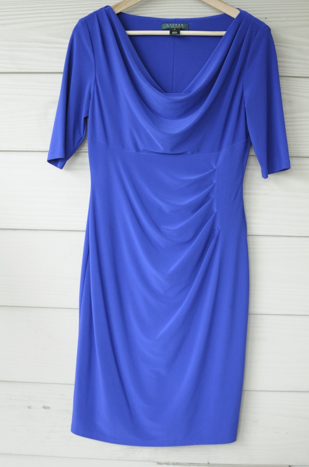 Lauren Ralph Lauren Dress Royal Blue Ruched Career Office Stretch Size 8P