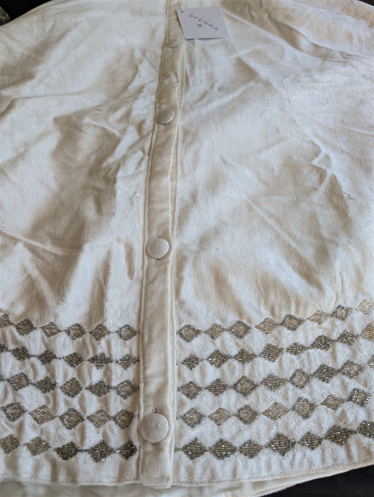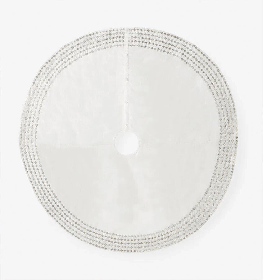 Sferra Lucido Ivory Velvet Christmas Tree Skirt Silver Diamond Embroidery 60 NEW