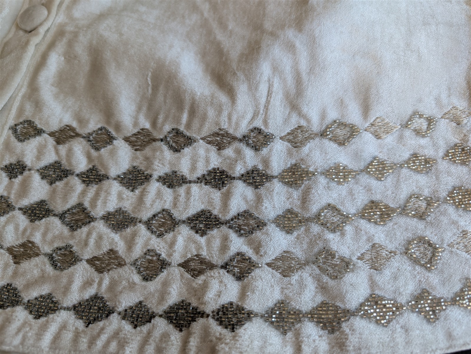 Diamond pattern beadwork and metallic embroidery |