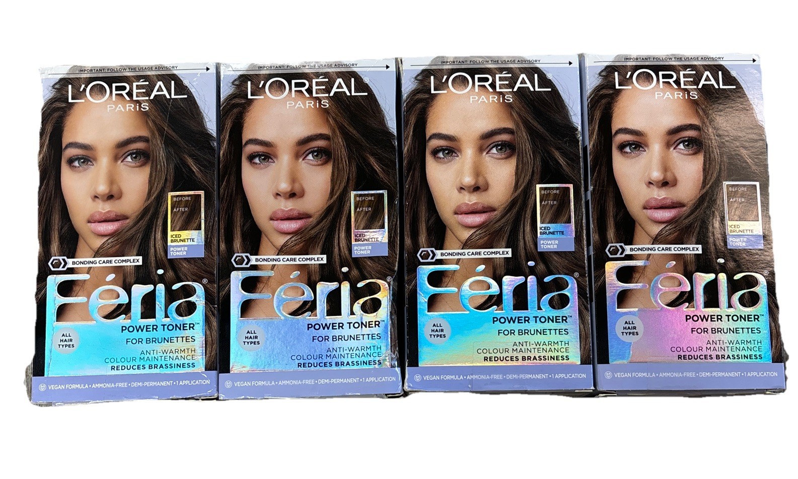 4 Pack~L'Oreal Paris Feria Hair Color ICED BRUNETTE Power Toner