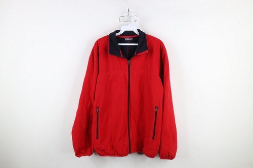 Vintage 90s Lands End Mens Size Medium Faded Blank Full Zip Fleece Jacket Red