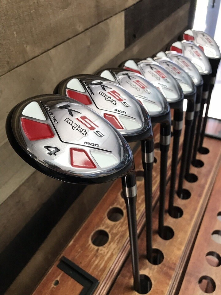 Replace Your Entire difficult to use iron set with the Majek K5 all hybrid iron set! Majekally improve your Hybrid-Iron game! Pure Golf Engineering: Majek Hybrid was Co-Engineered by members of the UCLA's engineering department. This unique relationship and pure engineering approach created the Majek All Hybrid Iron Set. Benefits of the Majek Hybrid: -More Weight Positioned Behind The "Sweet Spot" -Deeper Cavity Back Creates A Tighter Shot Dispersion, Which Increases The Accuracy On Off Center Hits. -Aerodynamic Design Creates A Reduction In Drag, Which Leads To Higher Club Head Speeds -Wide To Thin Crown Design Creates A Lower CG To Promote Higher Launch Angle For More Distance -Lightweight Premium Graphite Shaft Promotes Faster Swing Speed For Greater Distance. -Black Crown And Arrow Markers Make Alignment Easy And Eliminates Glare. Support A Local Company: Your Custom Made Majek Golf Hybrid Is Assembled By Hand In Riverside, CA, USA And Delivered Direct To Your Door.