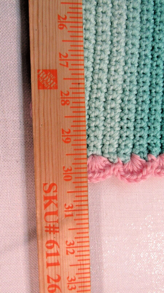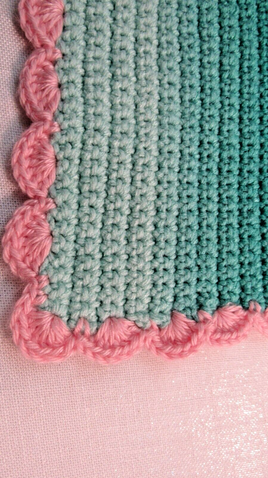 Vintage Handmade Green Pink Crochet Baby Blanket Afghan Knit Lap Blanket 30X32