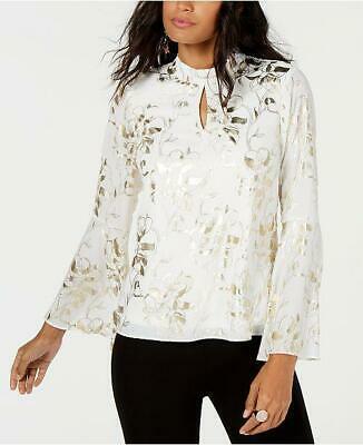 Thalia Sodi Metallic-Print Bell-Sleeve Top, Small