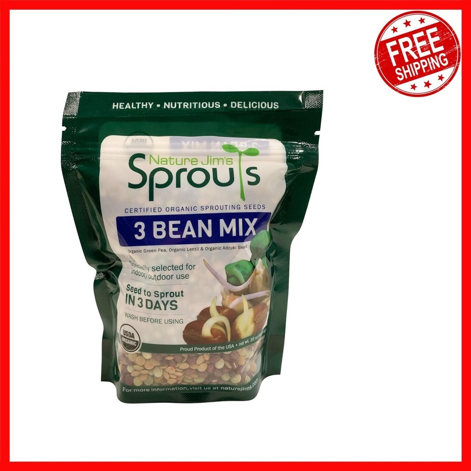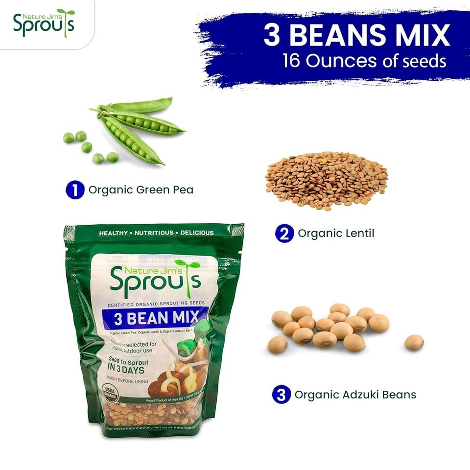 Fast Sprouting 3 Bean Seed Mix - Non-GMO Organic Lentil, Pea, Adzuki - 16 Oz