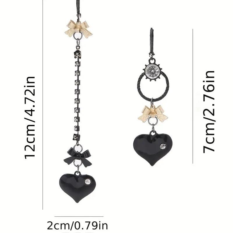 ? Chic Details ? Features glossy black enamel hearts, rhinestones, dainty gold bows, and black chain/ring elements.