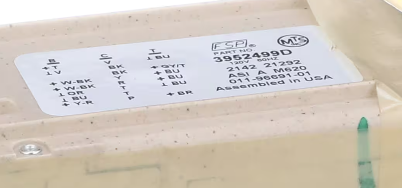 The Whirlpool 3952499D Timer is a genuine OEM replacement part designed for Whirlpool stacked washer/dryer units. Operating at 120 Volt, 60Hz, this timer controls the sequence of wash and dry cycles, ensuring proper operation and automatic shutoff. If your appliance is failing to advance cycles, running too long, or stopping prematurely, replacing the timer restores reliable performance.