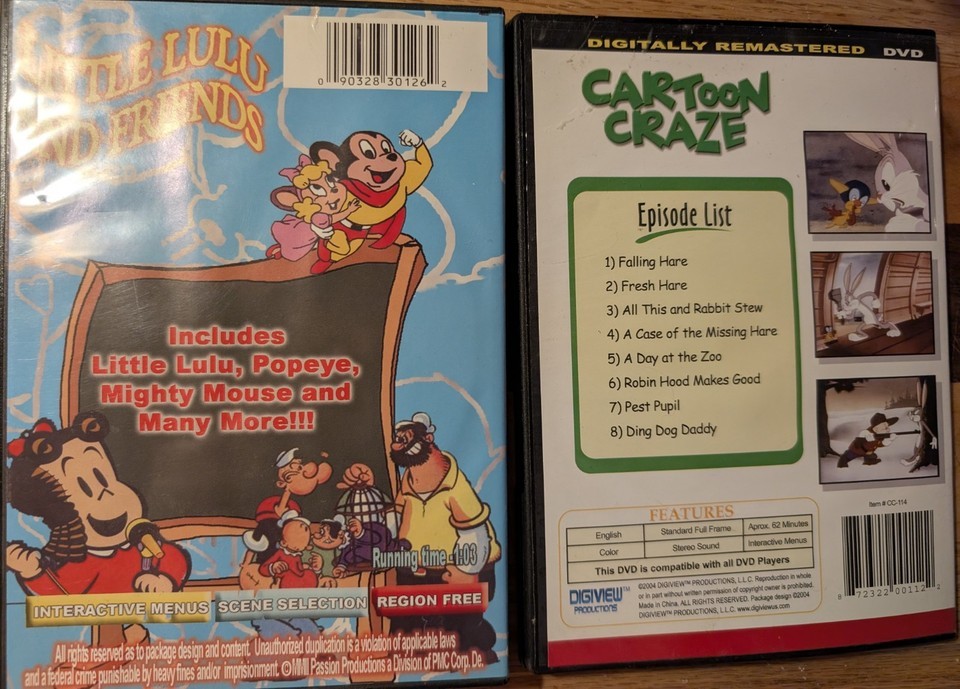 Lot of 2 Classic Cartoon DVDs - Bugs Bunny & Little Lulu - Digitally Remastered