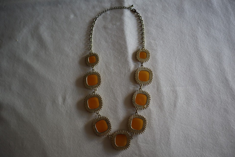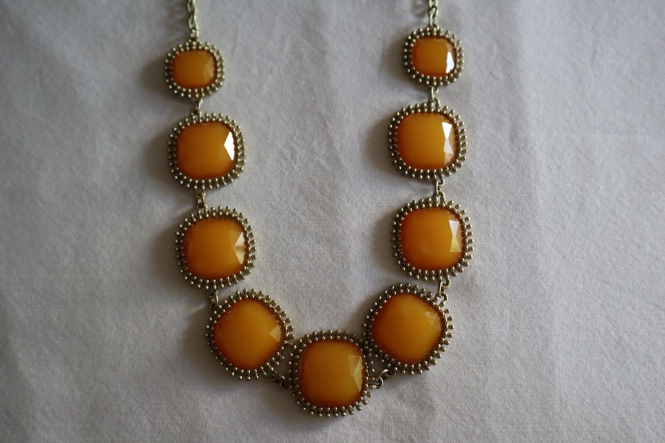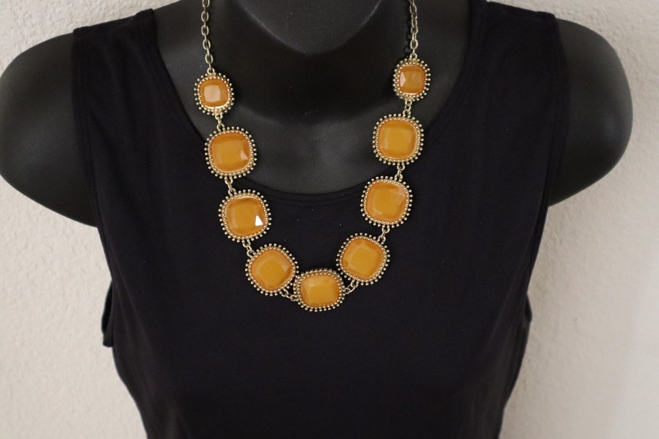 Chunky Yellow Orange Ombre Color Acrylic Stone Square Gold Tone Necklace 18"