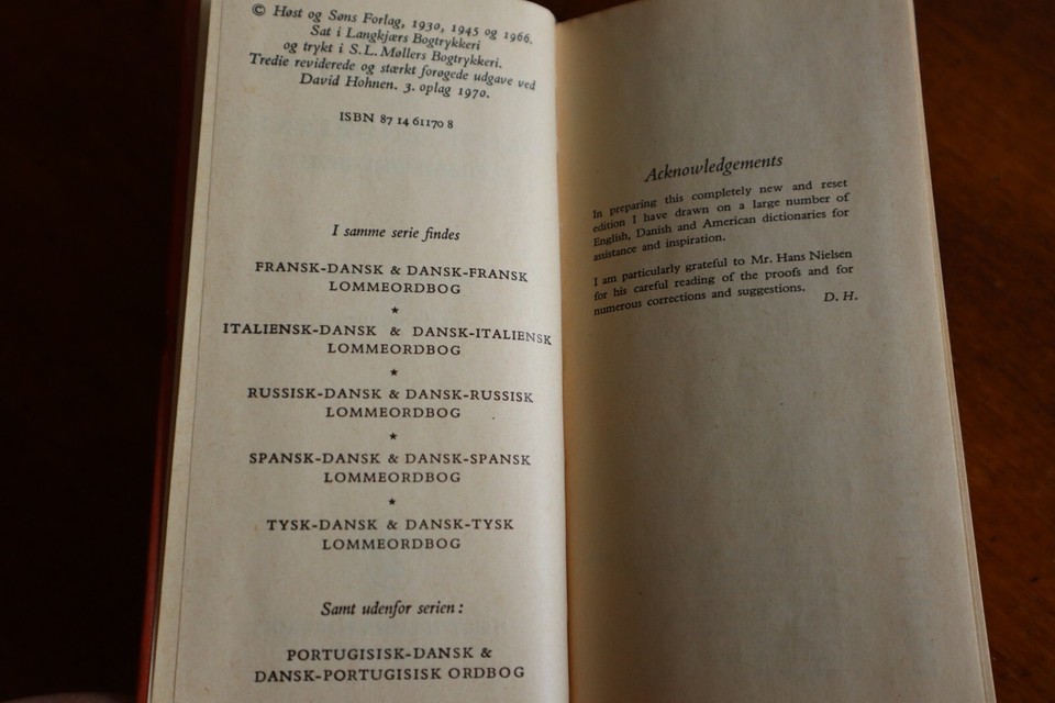 Host's Hardcover English-Danish, Danish-English Pocket Dictionary Vintage 1970