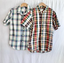 TWO Gap Boys XL 14 Short Sleeve Button Up Shirts Plaid Cotton Blue Green.