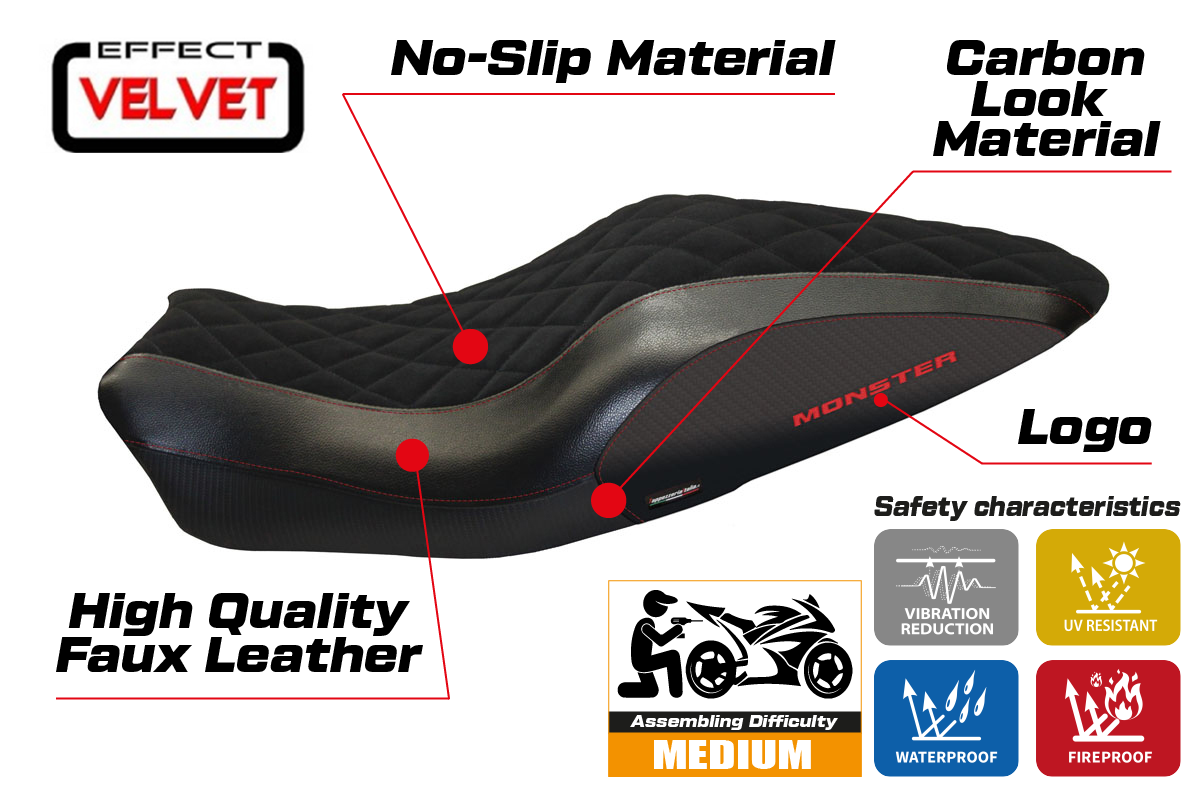 Ducati Monster 821 / 1200 2014 2015 2016 Seat Cover Tappezzeria Velvet Black