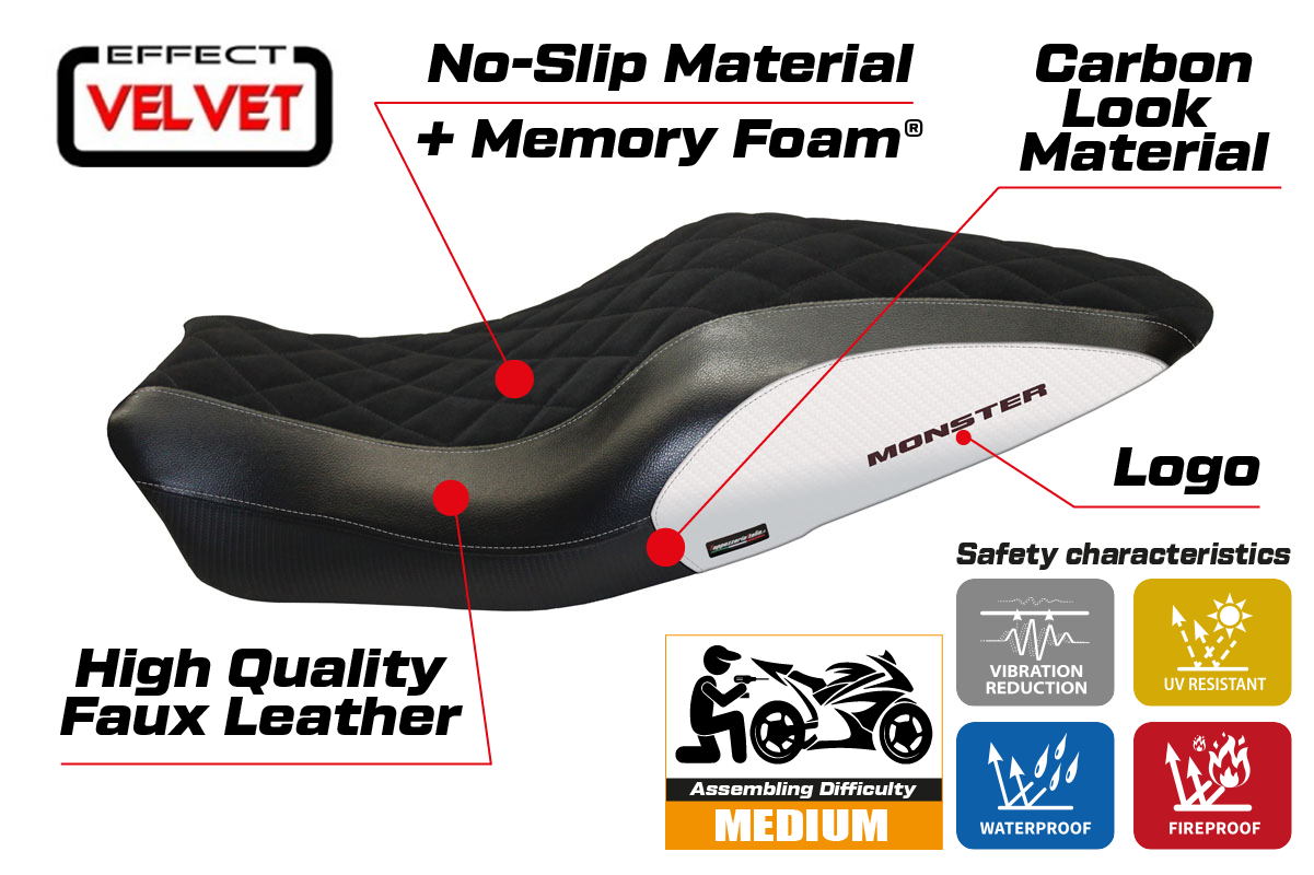 Ducati Monster 821 / 1200 2014-2016 Seat Cover Tappezzeria Velvet Comfort White