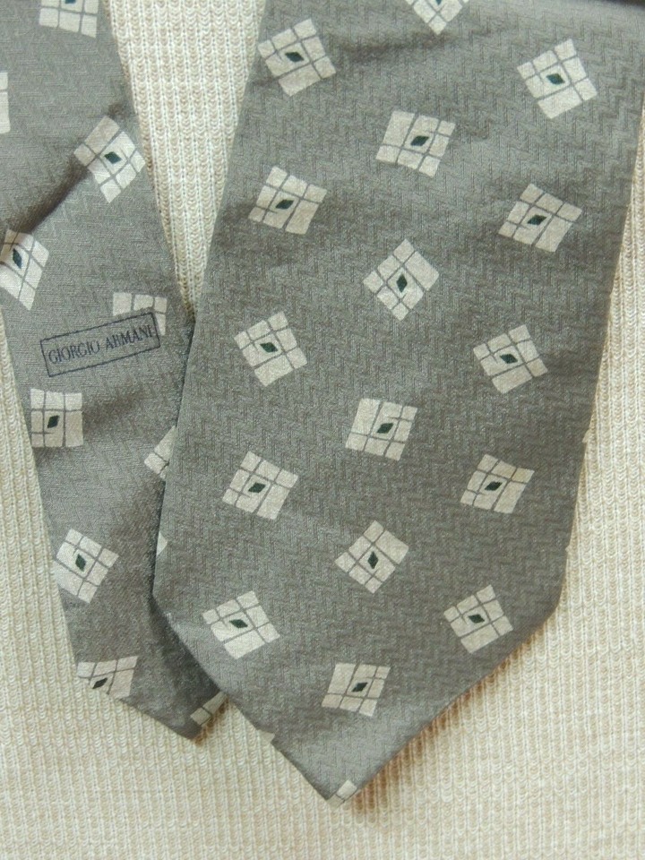 Vintage Giorgio Armani Cravatte Italy Neck Tie/Necktie Silk gray beige 56"x3.75"