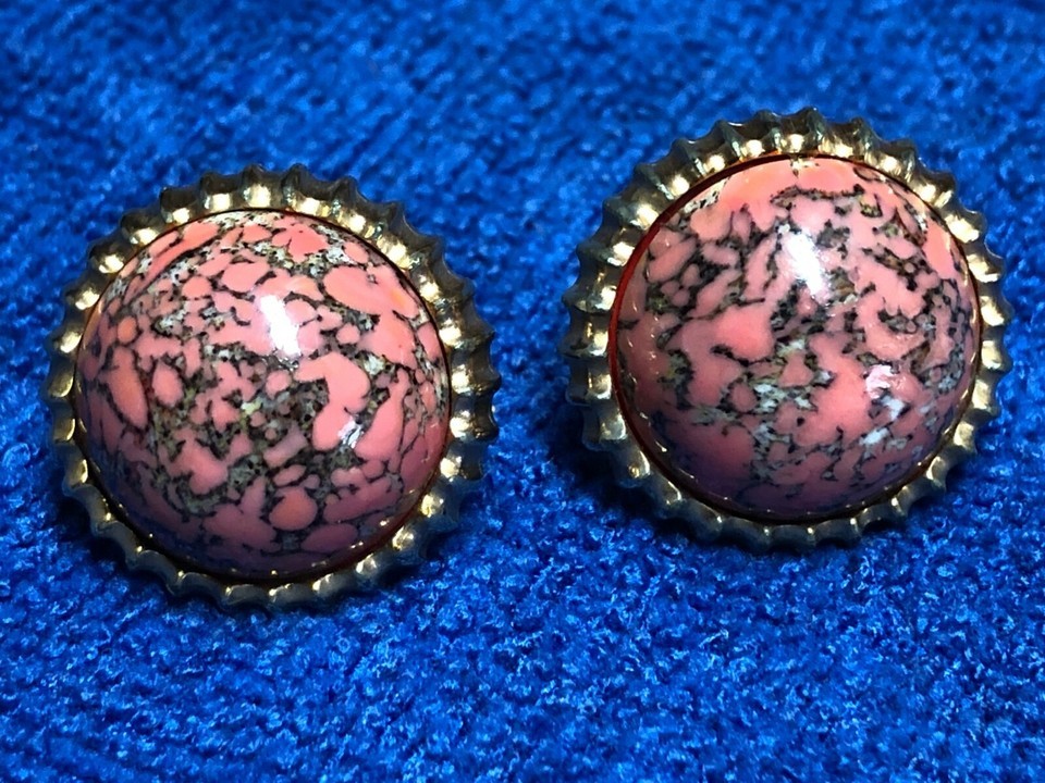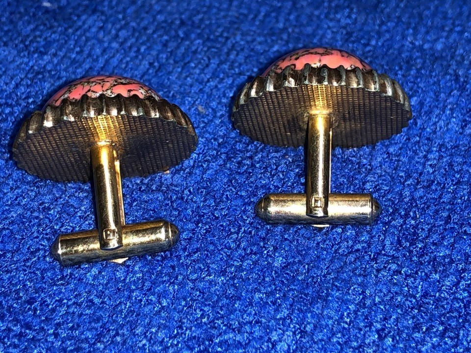 Vintage Pair Hickok Cufflinks Cuff Links faux Pink Rhodonite gold tone .75