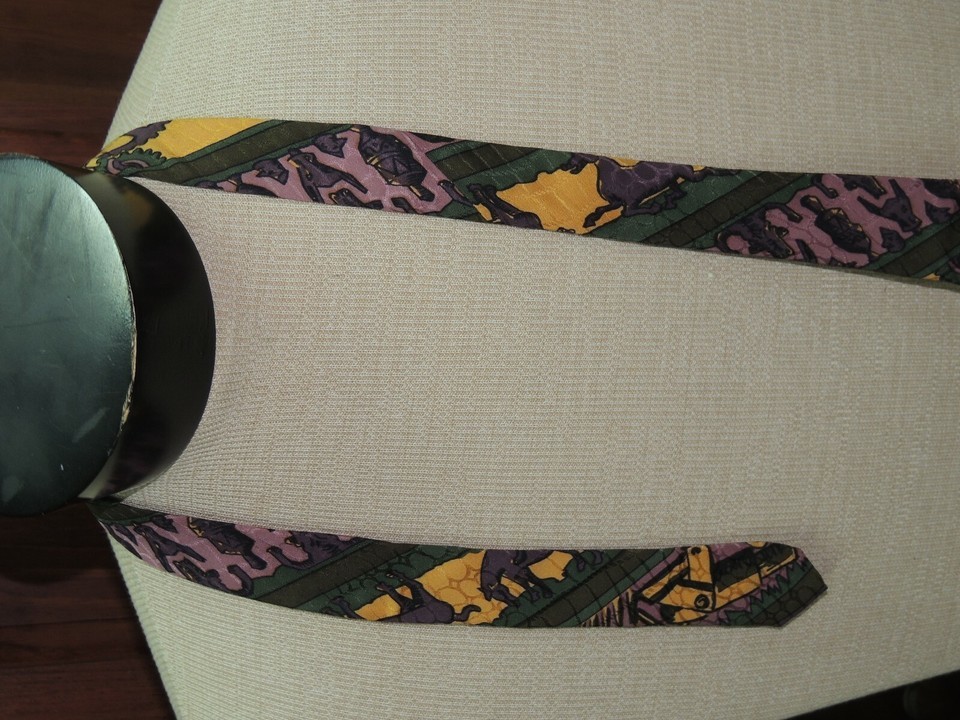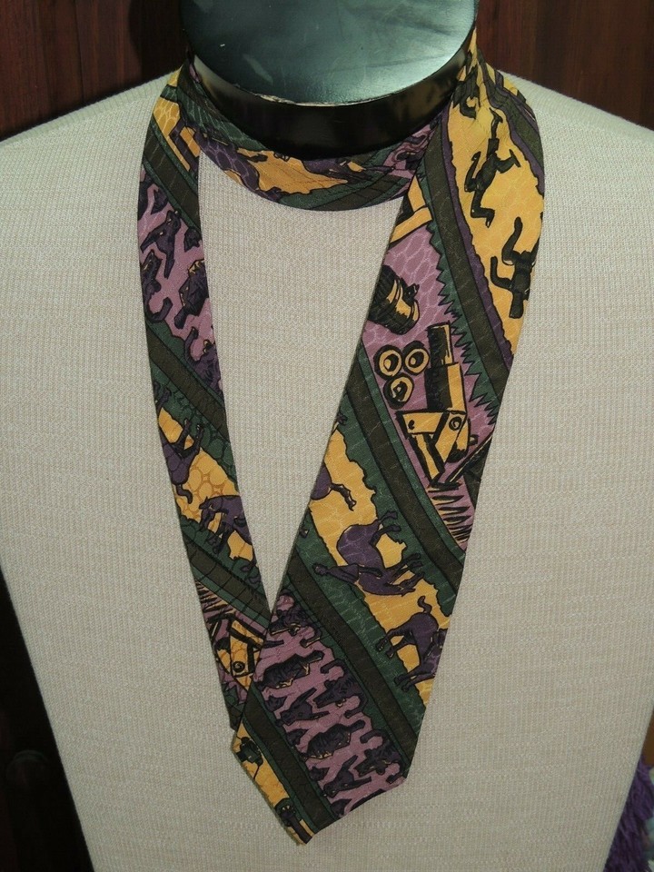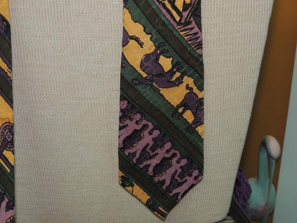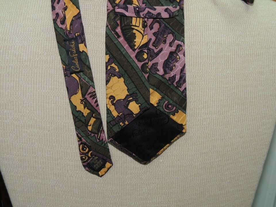 Carlos Falachi Neck Tie/Necktie 100% Silk gold green purple 58"x3.75" industrial