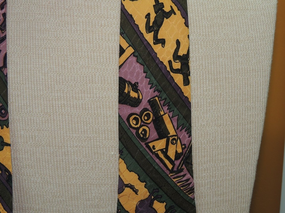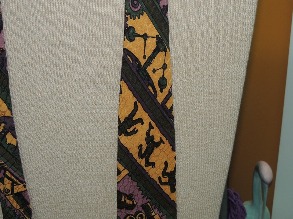 ONE PREOWNED MENS NECK TIE - THE PRINT IS REMINISCENT OF A 1930'S FORTUNE MAGAZINE COVER.