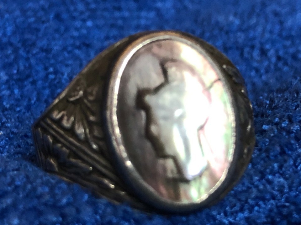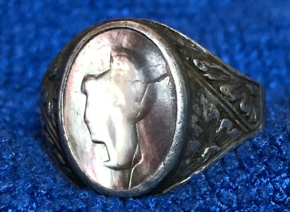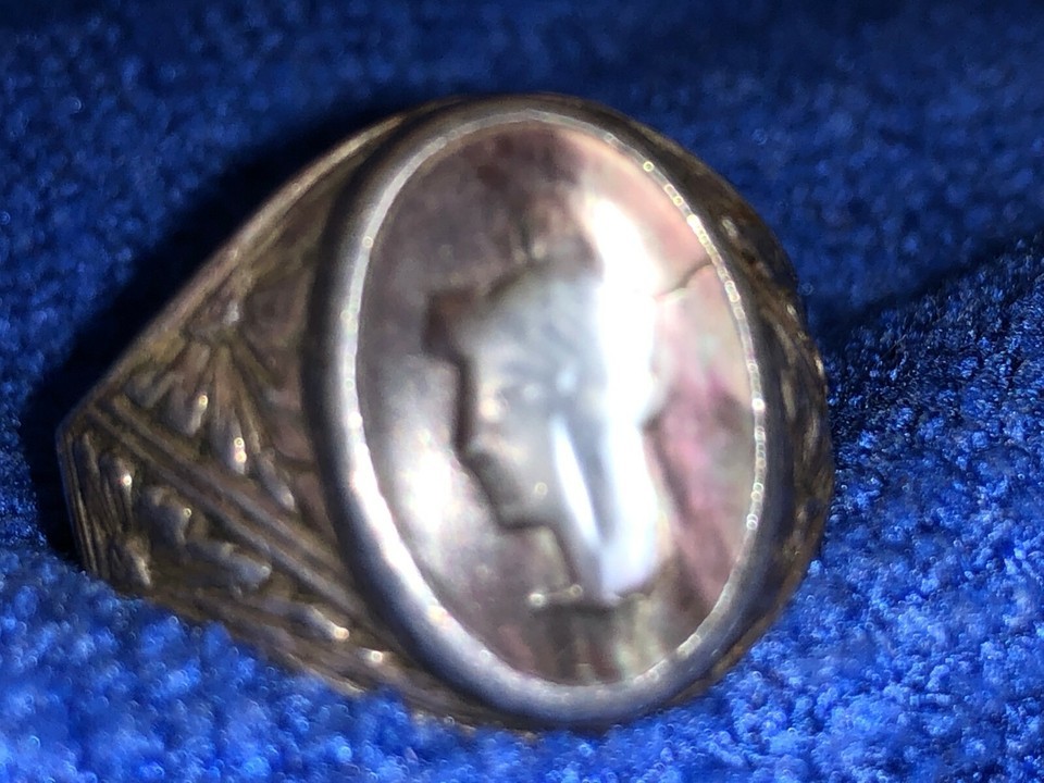 Vintage Sterling Ring Greek / Roman Intaglio Cameo Size 21mm 12+ Abalone Antique
