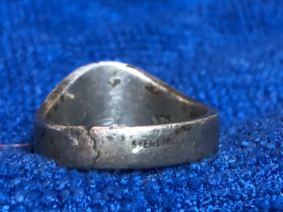 ONE RING, MARKED STERLING AND 975. MEASURES APPROXIMTELY 21mm, AND SHOULD BE SIZE 12-12.5. IT APPEARS TO BE ABALONE, BUT I AM NOT AN EXPERT AND MAKE NO GUARANTEES.