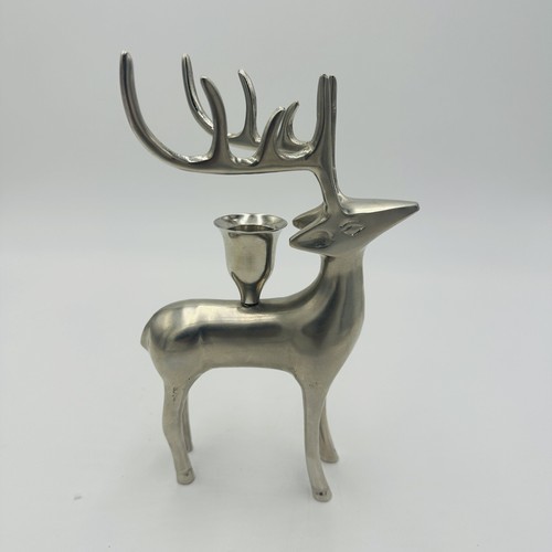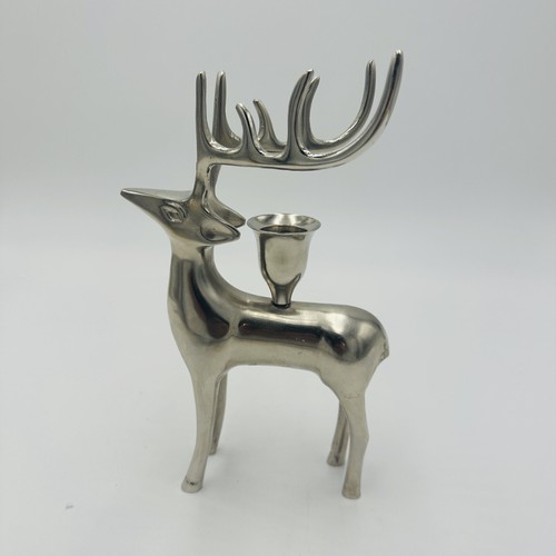 Pottery Barn Reindeer Candle Holders Vintage Silver Plated Seasonal Stag Taper