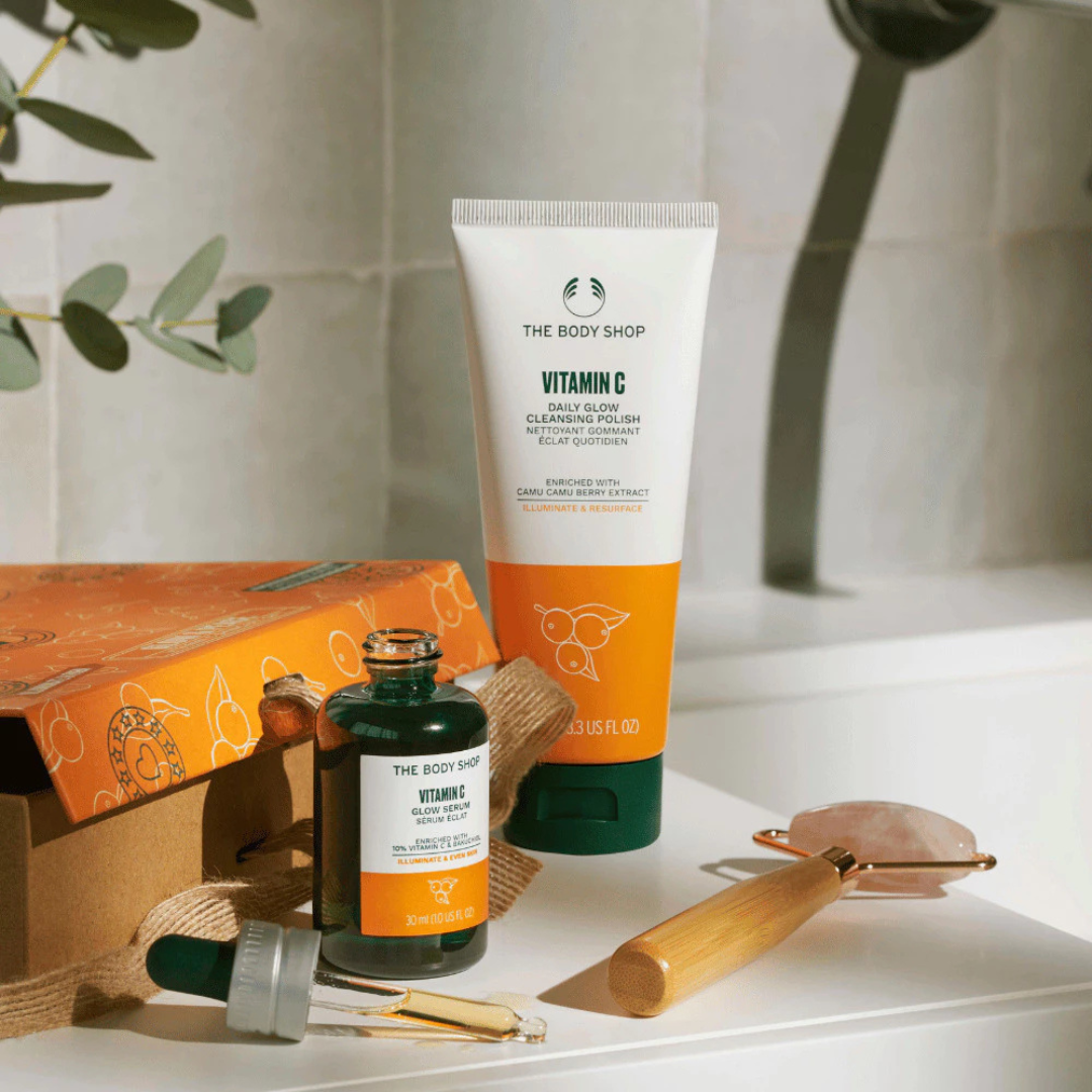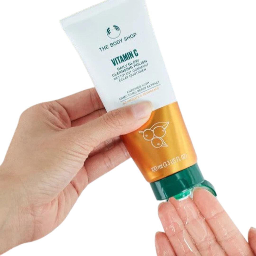 Reveal a glowing complexion with Vitamin C Glow Cleansing Polish from The Body Shop. This lightweight gel gently exfoliates while cleansing, helping to remove daily grit and dead skin cells to unveil smoother, more radiant skin. Gentle daily exfoliation ? Lambs skin rinses clean, thanks to jojoba micro-beads and volcanic glass perlite that softly buff away dullness. Radiance-boosting formula ? Packed with Vitamin C and camu camu berry extract to brighten and enhance skin's natural glow. Soft, luminous skin ? Leaves your complexion feeling noticeably smoother, softer, and refreshed. Lightweight and suitable for all types ? Refreshing gel texture that works beautifully on oily, dry, or combination skin. Delivered in a light gel base?free from harsh abrasives, ensuring a soft polish texture.
