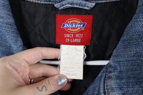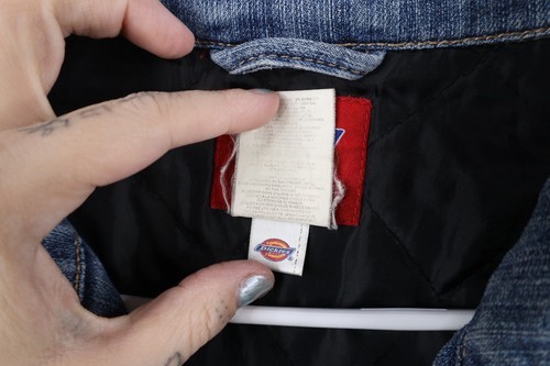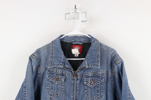 Vintage Dickies Womens 2XL Distressed Spell Out Quilted Denim Jean Jacket Blue