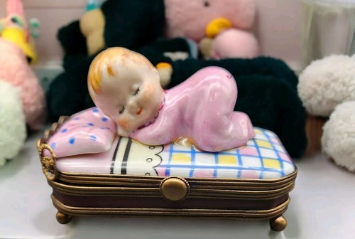 Limoges France Peint Main Baby On Bed Pink and 47 similar items