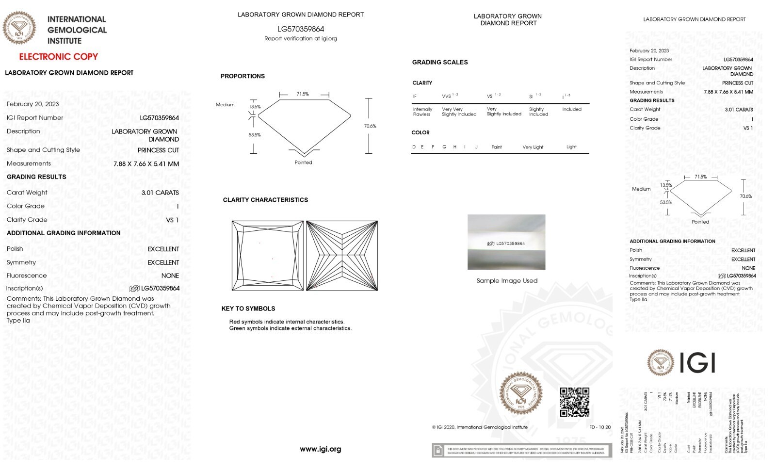 ? Please note that we will ship you same stone or exact similar stone with same color, clarity same carat weight certified stone. All Our Diamonds Are Certified And Laser inscripted.all of our diamonds are tested and certified with labs like IGI, GIA ,Etc.LabIGIReport #-ShapePrincessCarat3.02ColorIClarityVS1Cut-PolishExcellentSymExcellentFluorNoneLocationNew York, United StatesDepth74.1%Table69%GirdleSlightly ThickCrown14.0%, 46.9Pavillion56.0%, 38.1CuletNoneMeas7.66 x 7.65 x 5.67Ratio1.00BGMNoneGrowth TypeCVDPlease note that we are listing all of our stone's color clarity grade as per IGI Lab Report. IGI Lab is the 2nd most reputable trustworthy Lab after GIA. Every person can have a different opinion about the color clarity of the stone. So the stones you are getting can be one or two grades lower in color clarity grade as per GIA standards but as IGI standards those are as mentioned in the listing. I am not sure how practical it is to use $75000 (3 Carat E VS!) Natural Diamond stone standard for the same color clarity grade (3 Carat EVS1) Lab Grown Stone which you are getting for $750. My advice to you is whatever authenticity says please please get the stone if you do not like then I will accept the return without any question in the next 30 days of purchase. I don't want you to miss the great opportunity to buy those beautiful lab grown stones which are 100% the same chemical other properties wise as natural Diamonds at 1% of price compared to Natural Diamond.
