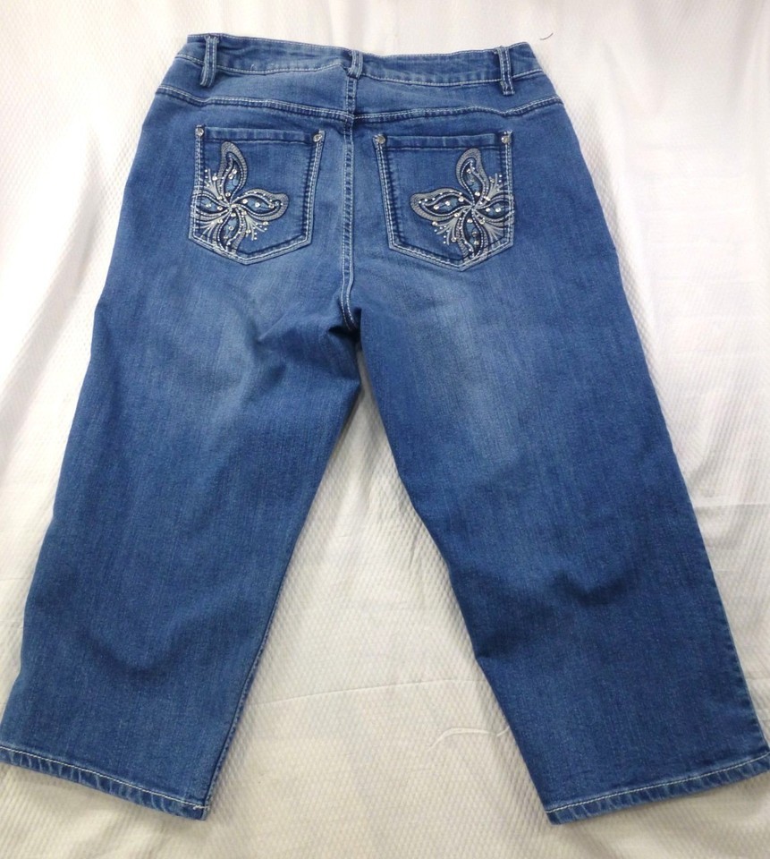 Avenue Denim Womens Capri Jeans Size 14 Blue Butterfly Embroidered Stretch