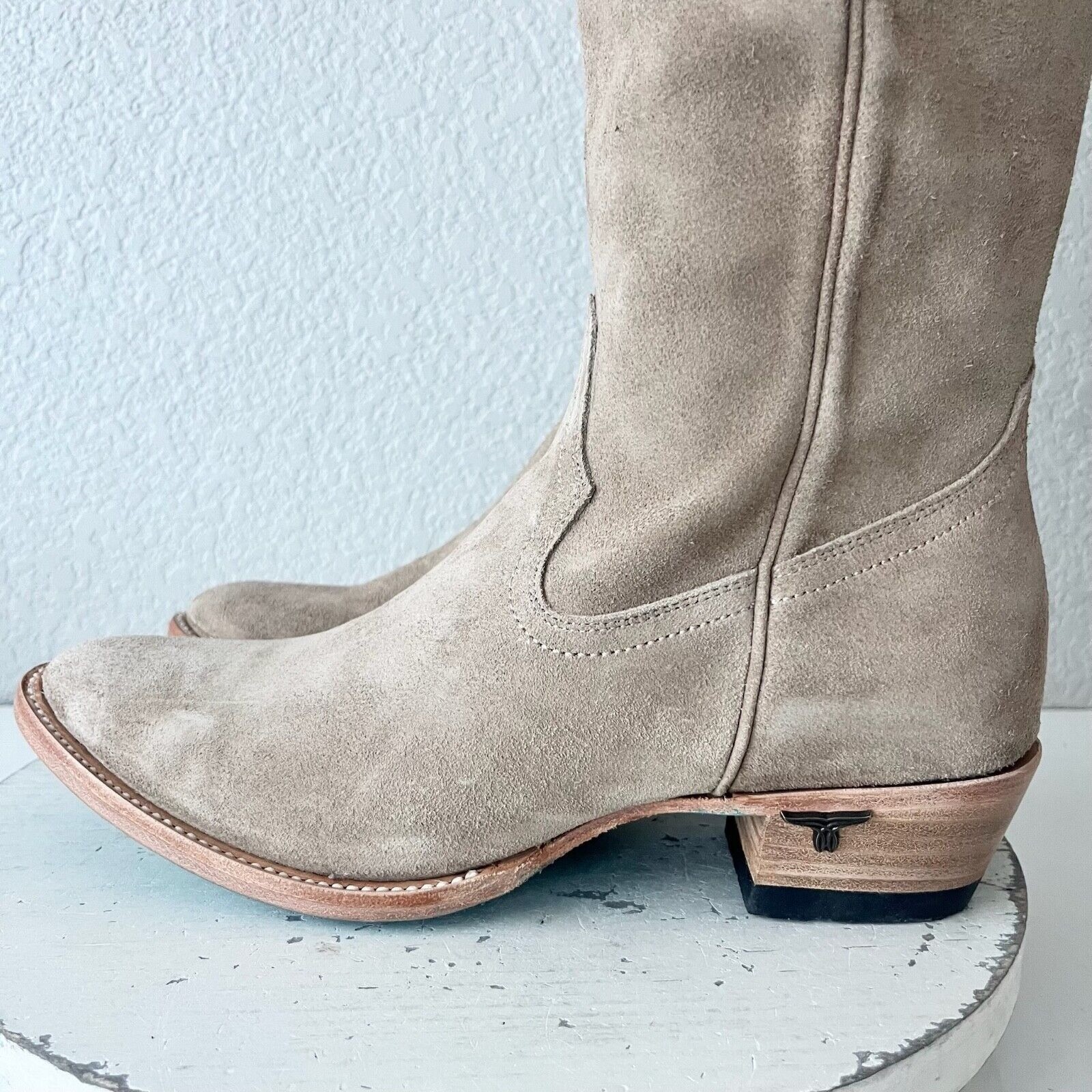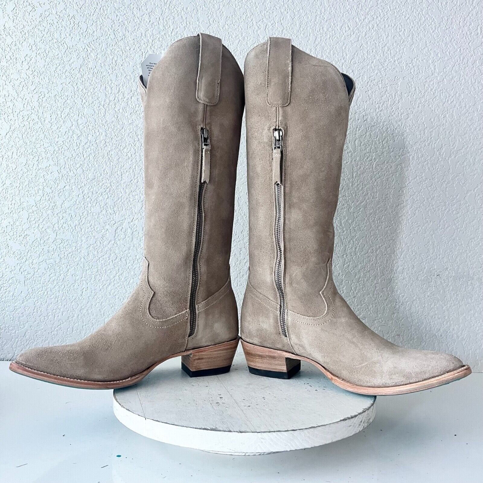 NEW Lane PLAIN JANE Womens Cowboy Boots 9.5 Latte Suede Leather Western Mid Calf