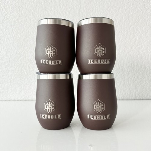 4 NEW ICEHOLE 12 Oz Wine Tumbler Set Vacuum Insulated Stainless Steel Lid Brown