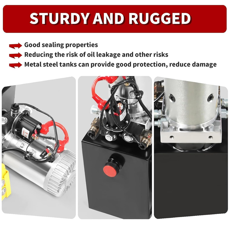 3) Quick Lifting and Lowering: Fast and reliable start up, quick oil output through correct power connection, it has a function of lifting and lowering, can efficiently handle a large amount of work