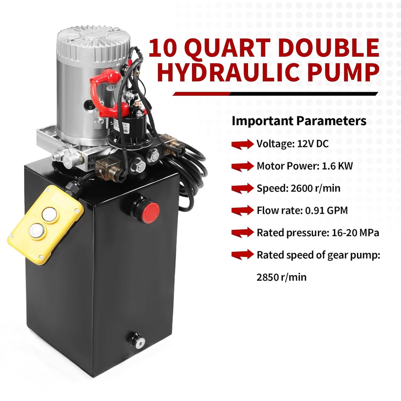 10 Quart Double Acting Hydraulic Dump Trailer Pump for Lifting and Lowering Dump Trailer Trucks