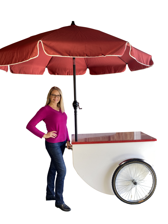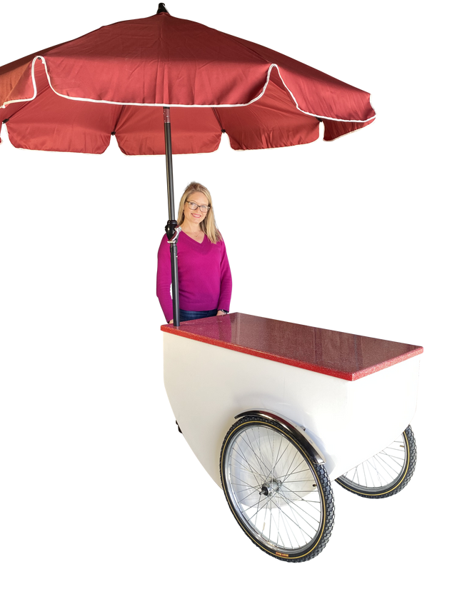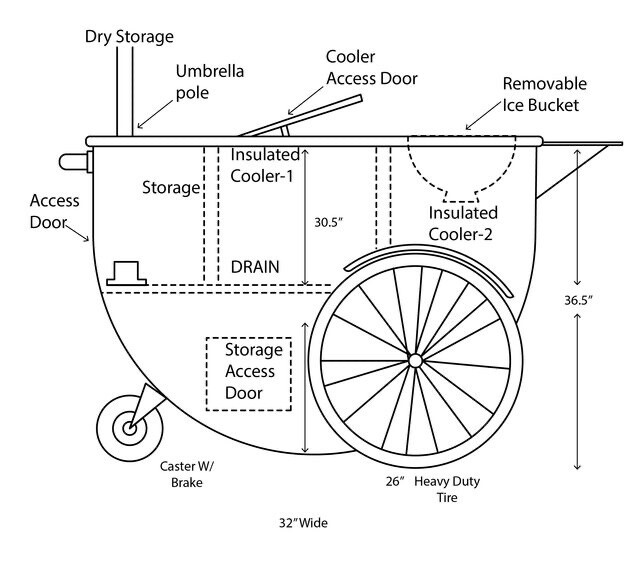 Lightweight fiberglass body with two large insulated coolers offer ample display area and lots of cold storage for individual drinks,wine bottles or bubblies.