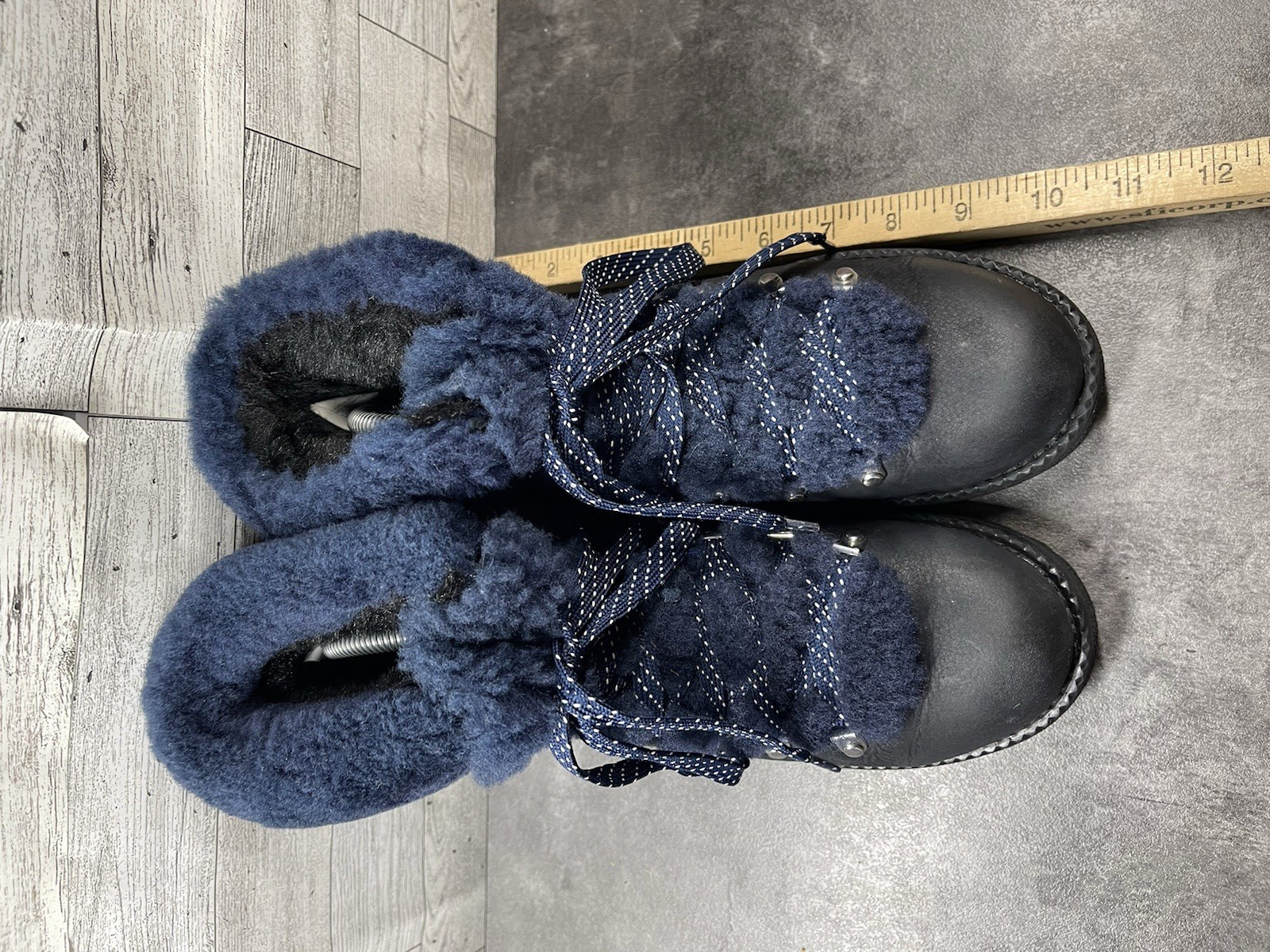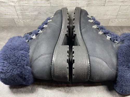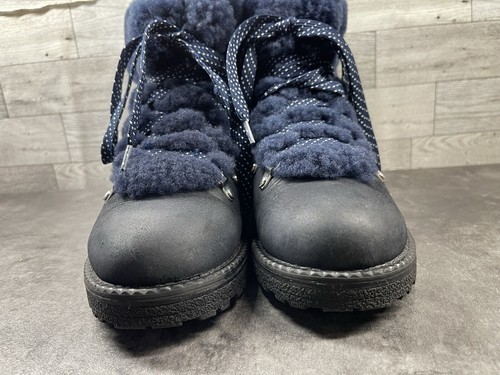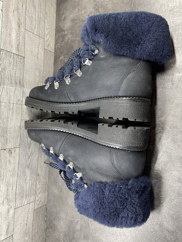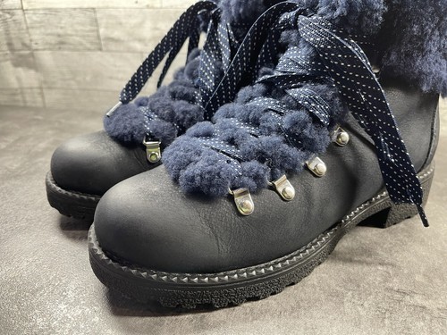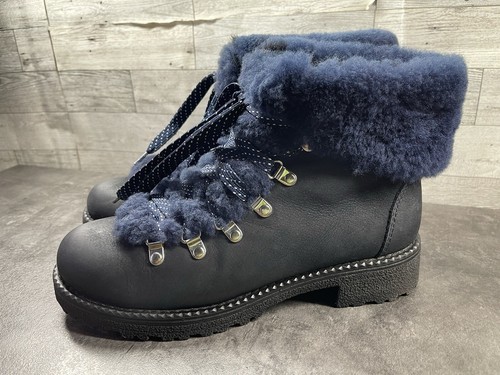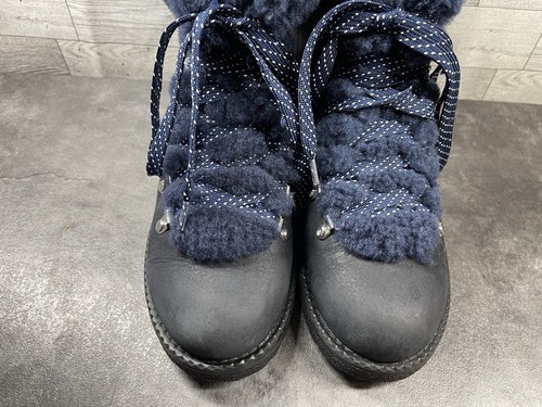 J. Crew Boots Women 8M Nordic Hiking Ankle Shoes Blue Leather Fur Lined Moto