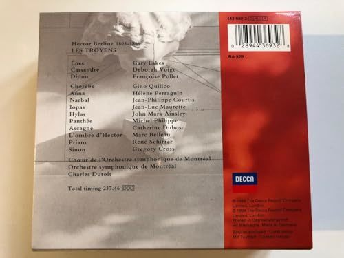 Product description: Berlioz - Les Troyens - Lakes, Pollet, Voigt, Quilico, Courtis, Perraguin, Ainsley, Ch?ur Et Orchestre Symphonique De Montreal, Dutoit / Decca 4x Audio CD 1994 / 443 693-2 UPC 028944369328 // Louis-Hector Berlioz (11 December 1803 ? 8 March 1869) was a French Romantic composer and conductor. His output includes orchestral works such as the Symphonie fantastique and Harold in Italy, choral pieces including the Requiem and L'Enfance du Christ, his three operas Benvenuto Cellini, Les Troyens and Beatrice et Benedict, and works of hybrid genres such as the "dramatic symphony" Romeo et Juliette and the "dramatic legend" La Damnation de Faust. // Label: Decca ? 443 693-2 Format: 4 x CD, Stereo, Box Set Country: Europe Released: 1994 Genre: Classical Style: Romantic, Opera /// Tracklist: Les Troyens, Opera, H. 133a Acte 1 1-1 Ha! Ha! Apres Dix Ans (Ch?ur De La Populace Troyenne) Chorus ? Ch?urs de L'Orchestre Symphonique de Montreal 3:39 1-2 Les Grecs Ont Disparu! (Cassandre) Soprano Vocals ? Deborah Voigt 7:43 1-3 Chorebe!...Il Faut Qu'Il Parte Et Quitte La Troade (Cassandre) Soprano Vocals ? Deborah Voigt 1:38 1-4 Reviens A Toi, Vierge Adoree (Chorebe) Baritone Vocals ? Gino Quilico 8:26 1-5 Signes Trompeurs! . . . Quitte-Nous Des Ce Soir (Cassandre) Soprano Vocals ? Deborah Voigt 4:10 1-6 Dieux Protecteurs De La Ville Eternelle (Ch?ur) Chorus ? Ch?urs de L'Orchestre Symphonique de Montreal 5:01 1-7 Combat De Ceste - Pas De Lutteurs Chorus ? Ch?urs de L'Orchestre Symphonique de Montreal 1:30 1-8 Pantomime: Andromaque Et Son Fils! (Ch?ur) Chorus ? Ch?urs de L'Orchestre Symphonique de Montreal 6:42 1-9 Un Traître, Un Espion! (Soldats) Baritone Vocals ? Rene Schirrer Soprano Vocals ? Deborah Voigt Voice Actor ? Gregory Cross 5:57 1-10 Du Peuple Et Des Soldats, O Roi (Enee) Tenor Vocals ? Gary Lakes 1:15 1-11 Chatiment effroyable! (Enee, Sinon, Chorebe, Priam, Panthee, Ascagne, Hecube, Le Peuple) Baritone Vocals ? Gino Quilico, Michel Philippe, Rene Schirrer Mezzo-soprano Vocals ? Claudine Carlson Soprano Vocals ? Catherine Dubosc, Deborah Voigt Tenor Vocals ? Gary Lakes 6:02 1-12 Que La Deesse Nous Protege (Enee) Tenor Vocals ? Gary Lakes 1:34 1-13 Non, Je Ne Verrai Pas La Deplorable Fete (Cassandre) Soprano Vocals ? Deborah Voigt 2:02 1-14 Du Roi Des Dieux, O Fille Aimee (Ch?ur) Chorus ? Ch?urs de L'Orchestre Symphonique de Montreal 6:52 Acte 2 Premier Tableau 2-1 (Introduction) 3:48 2-2 O Lumiere De Troie! (Enee) Tenor Vocals ? Gary Lakes 4:23 2-3 Quelle Esperance Encore Est Permise, Panthee? (Enee) Tenor Vocals ? Gary Lakes 2:28 Deuxieme Tableau 2-4 Ah! Puissante Cybele (Ch?ur Des Troyennes) Chorus ? Ch?urs de L'Orchestre Symphonique de Montreal 3:32 2-5 Tous Ne Periront Pas (Cassandre) Soprano Vocals ? Deborah Voigt 4:13 2-6 Complices De Sa Gloire (Ch?ur Des Troyennes) Chorus ? Ch?urs de L'Orchestre Symphonique de Montreal 1:51 2-7 Cassandre, Avec Toi Nous Mourons! (Ch?ur Des Troyennes) Chorus ? Ch?urs de L'Orchestre Symphonique de Montreal 3:25 2-8 Prelude - Les Troyens a Carthage 5:07 Acte 3 2-9 De Carthage Les Cieux Semblent Benir La Fete! (Ch?ur Du Peuple Carthaginois) Chorus ? Ch?urs de L'Orchestre Symphonique de Montreal 1:35 2-10 Gloire a Didon (Ch?ur Du Peuple Carthaginois) Chorus ? Ch?urs de L'Orchestre Symphonique de Montreal 2:12 2-11 Nous Avons Vu Finir Sept Ans A Peine (Didon) Soprano Vocals ? Francoise Pollet 6:36 2-12 Entree Des Constructeurs 1:12 2-13 Entree Des Matelots 1:08 2-14 Entree Des Laboureurs 1:54 2-15 Peuple! Tous Les Honneurs (Didon) Soprano Vocals ? Francoise Pollet 4:13 2-16 Les Chants Joyeux (Didon) Soprano Vocals ? Francoise Pollet 5:38 2-17 Sa Voix Fait Naître Dans Mon Sein (Didon) Soprano Vocals ? Francoise Pollet 5:17 2-18 Echappes A Grand Peine (Iopas) Tenor Vocals ? Jean-Luc Maurette 2:08 2-19 Marche Troyenne Dans Le Mode Triste - J'Eprouve Une Soudaine Et Vive Impatience (Didon) Soprano Vocals ? Francoise Pollet 2:18 2-20 Auguste Reine (Ascagne) Soprano Vocals ? Catherine Dubosc 3:15 2-21 J'ose A Peine Annoncer La Terrible Nouvelle! (Narbal) Bass Vocals ? Jean-Philippe Courtis 3:19 2-22 Annonce A Nos Troyens L' Entreprise Nouvelle (Enee) Tenor Vocals ? Gary Lakes 4:20 Acte 4 Premier Tableau 3-1 Chasse Royale Et Orage 9:27 Deuxieme Tableau 3-2 Dites Narbal, Qui Cause Vos Alarmes? (Anna) Soprano Vocals ? Helene Perraguin 3:18 3-3 De Quel Revers Menace-Tu Carthage (Narbal) Bass Vocals ? Jean-Philippe Courtis 3:52 3-4 Marche Pour L' Entree De la Reine 1:19 3-5 Ballet: Pas Des Almees 4:13 3-6 Ballet: Danse Des Esclaves 4:45 3-7 Ballet: Pas D'Esclaves Nubiennes 1:22 3-8 Assez, Ma S?ur (Didon)- O Blonde Ceres (Iopas) Soprano Vocals ? Francoise Pollet Tenor Vocals ? Jean-Luc Maurette 5:40 3-9 Pardonne, Iopas, Ta Voix Meme... O Pudeur! Tout Conspire A Vaincre Mes Remords (Didon) Soprano Vocals ? Francoise Pollet 5:11 3-10 Mais Bannissons Ces Tristes Souvenirs (Enee) Tout N'Est Que Paix Et Charme (Septuor) Baritone Vocals ? Michel Philippe Bass Vocals ? Jean-Philippe Courtis Soprano Vocals ? Catherine Dubosc, Francoise Pollet, Helene Perraguin Tenor Vocals ? Gary Lakes, Jean-Luc Maurette 3:51 3-11 Nuit D'ivresse Et D'Extase Infinie (Didon, Enee) Soprano Vocals ? Francoise Pollet Tenor Vocals ? Gary Lakes 9:03 Acte 5 Premier Tableau 4-1 Vallon Sonore (Hylas) Tenor Vocals ? John Mark Ainsley 5:22 4-2 Preparez Tout, Il Faut Partir Enfin (Panthee) Baritone Vocals ? Michel Philippe 2:21
