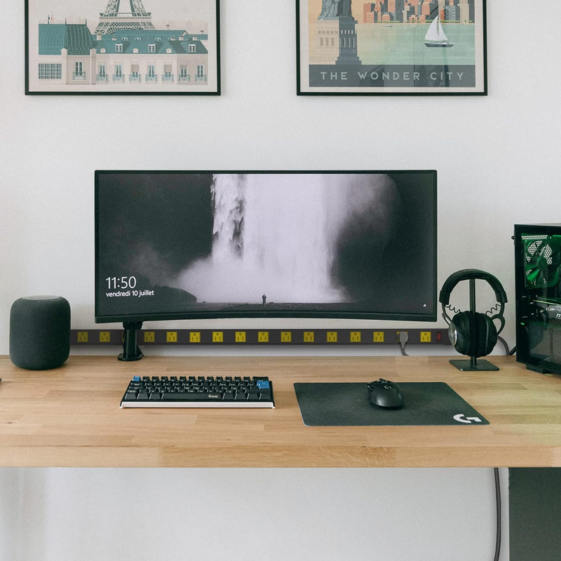 Sturdy metal power strip, the outlets are tight, increase the outlet capacity to 16 outlets, widely spaced design will be suitable for larger plugs.