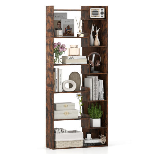 6-Tier Bookshelf Wooden Bookcase with 2 Anti-Tipping Kits Open Display Shelf-Rustic Brown - Color: Rustic Brown