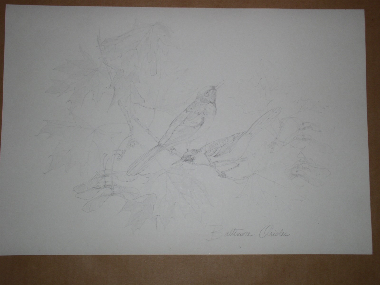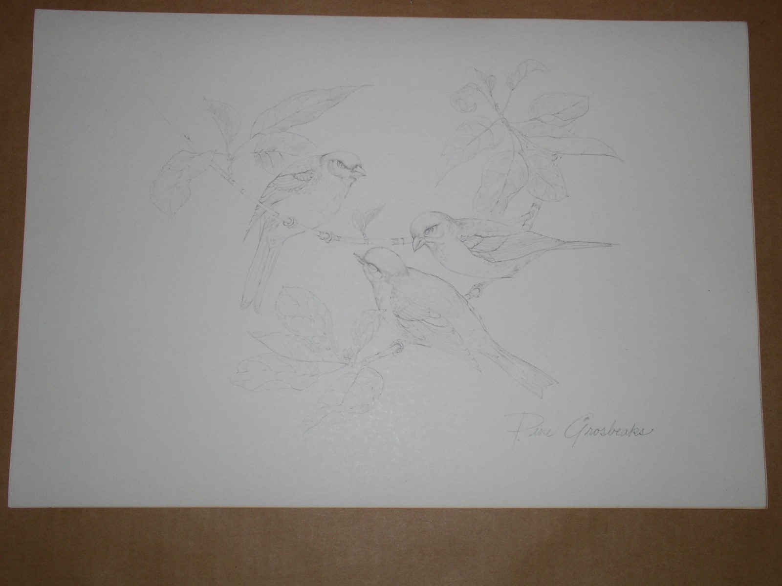 Bird Sketches Pencil Drawings For Watercolor Templates 17 X 12 Lot of 5 Unused