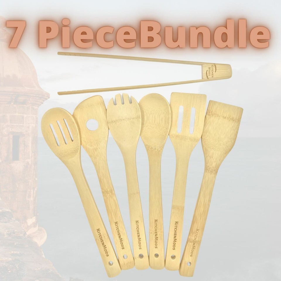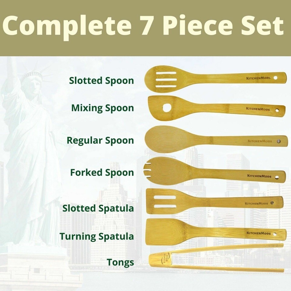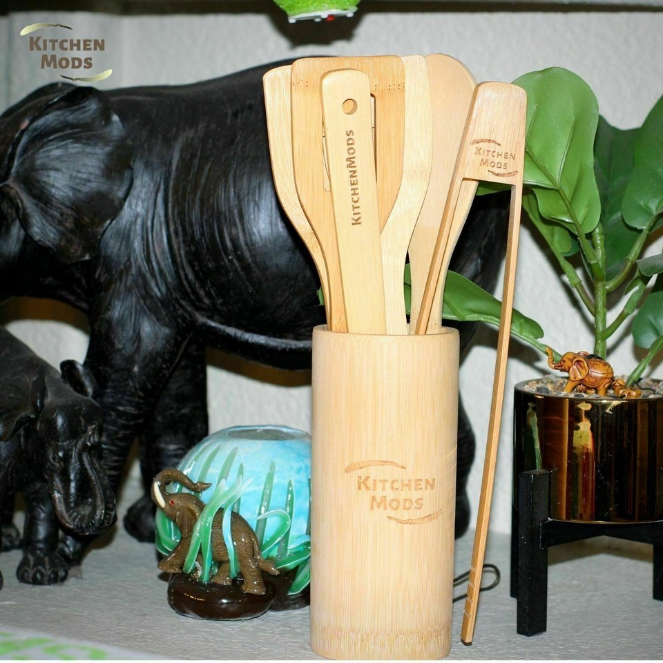 Bamboo Spoons KitchenMods® Authentic 7 Wooden Bamboo Utensils Set *UtensilsONLY*
