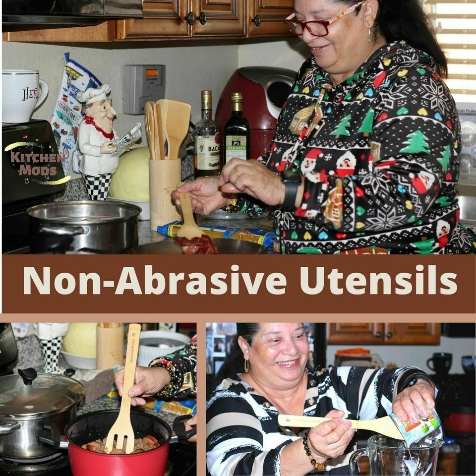 3?? Bamboo material is stronger than plastic and a natural non-abrasive material and gentle for your non-stick cookware.
