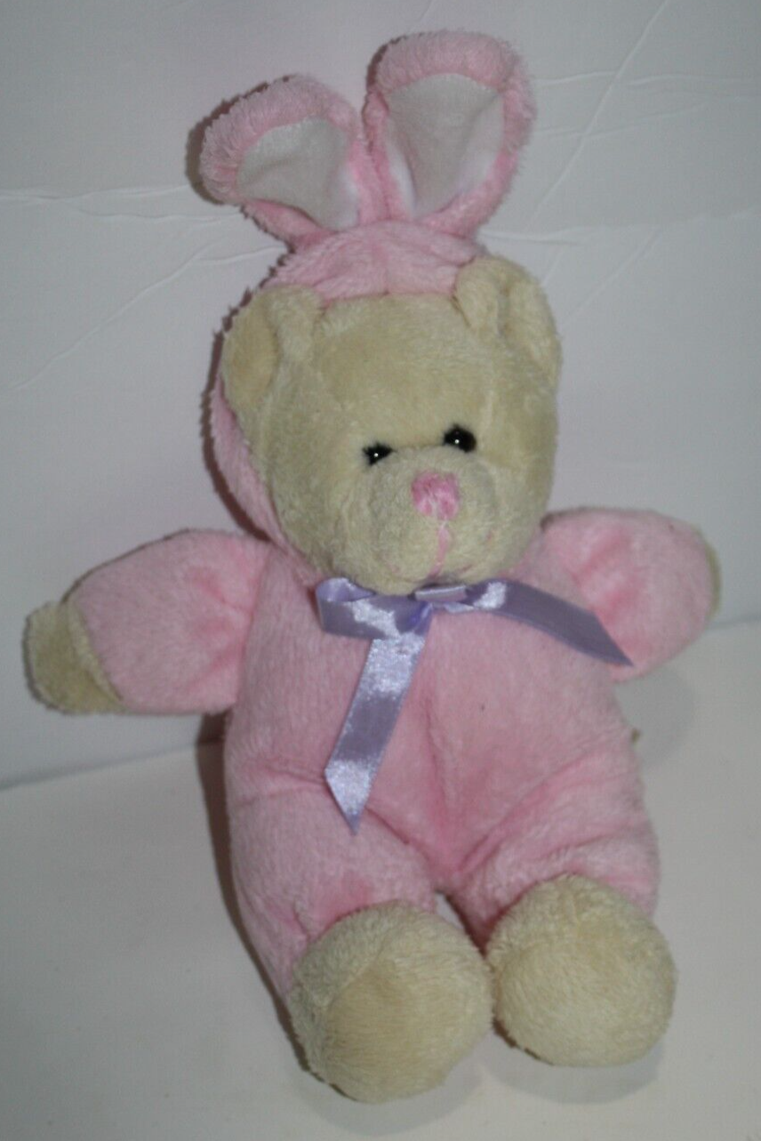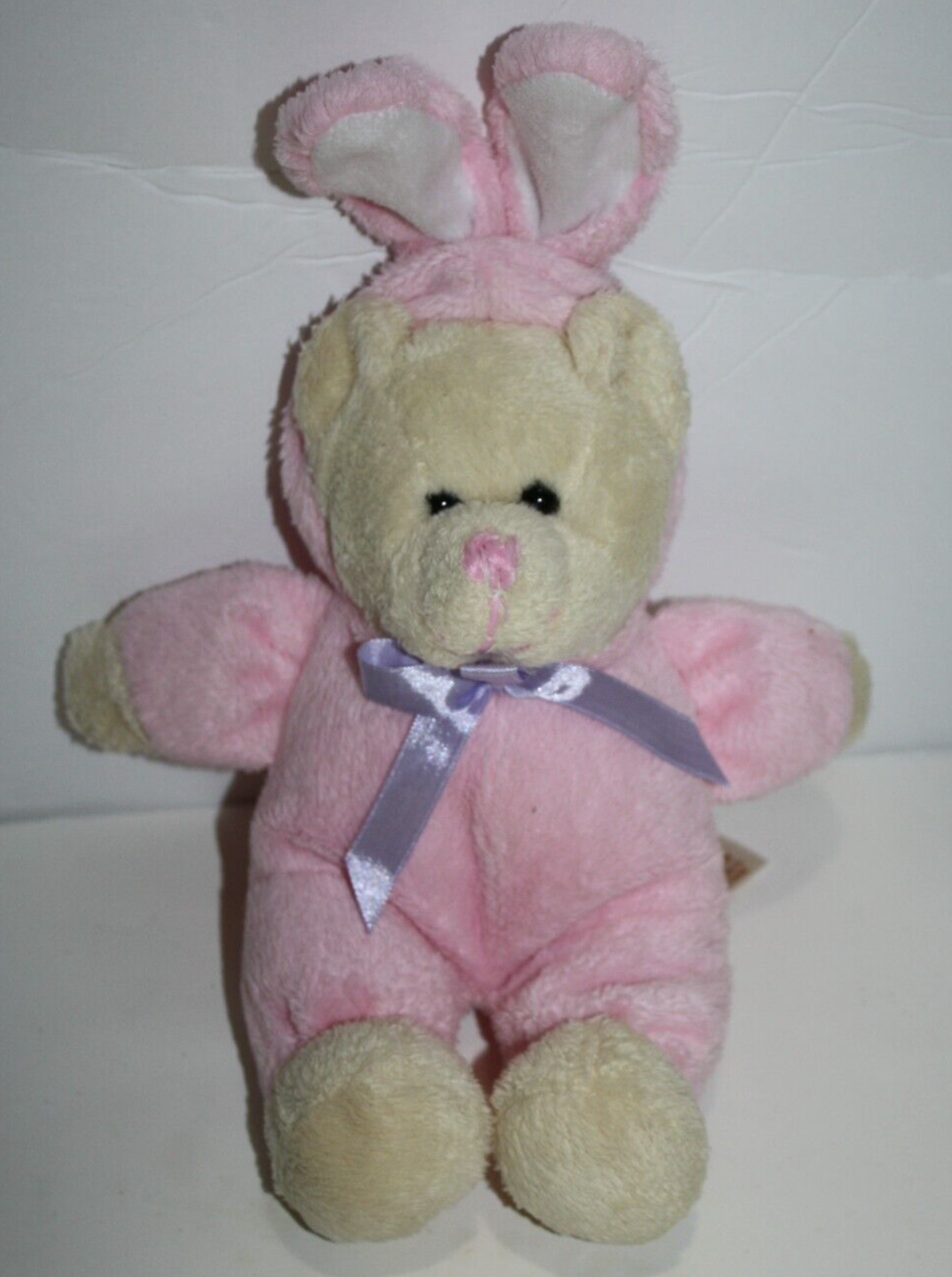 Dan Dee Easter Bunny Rabbit Teddy Bear 9" Beige Hood Pink Plush Soft Stuffed Toy