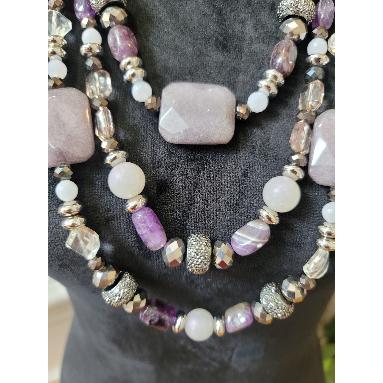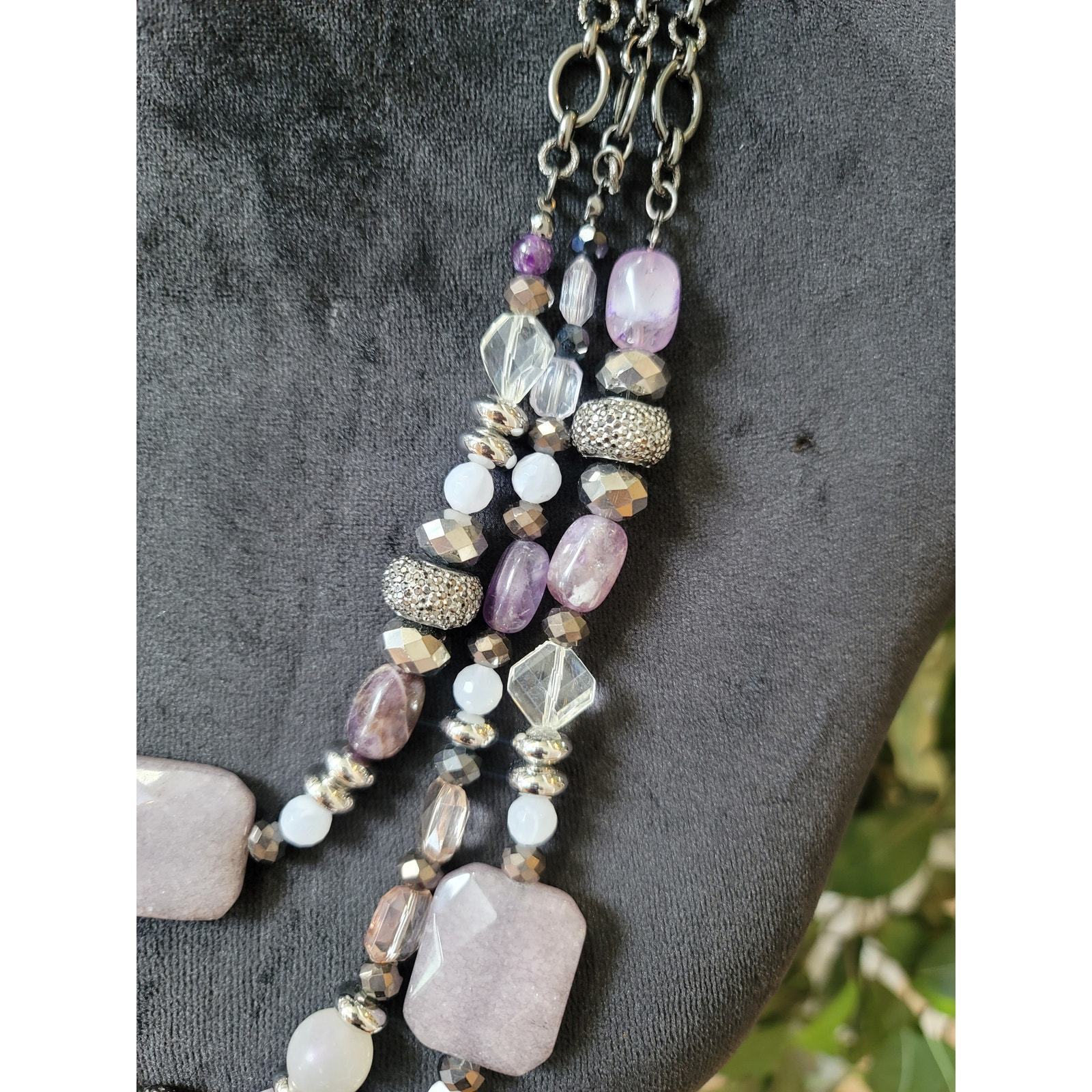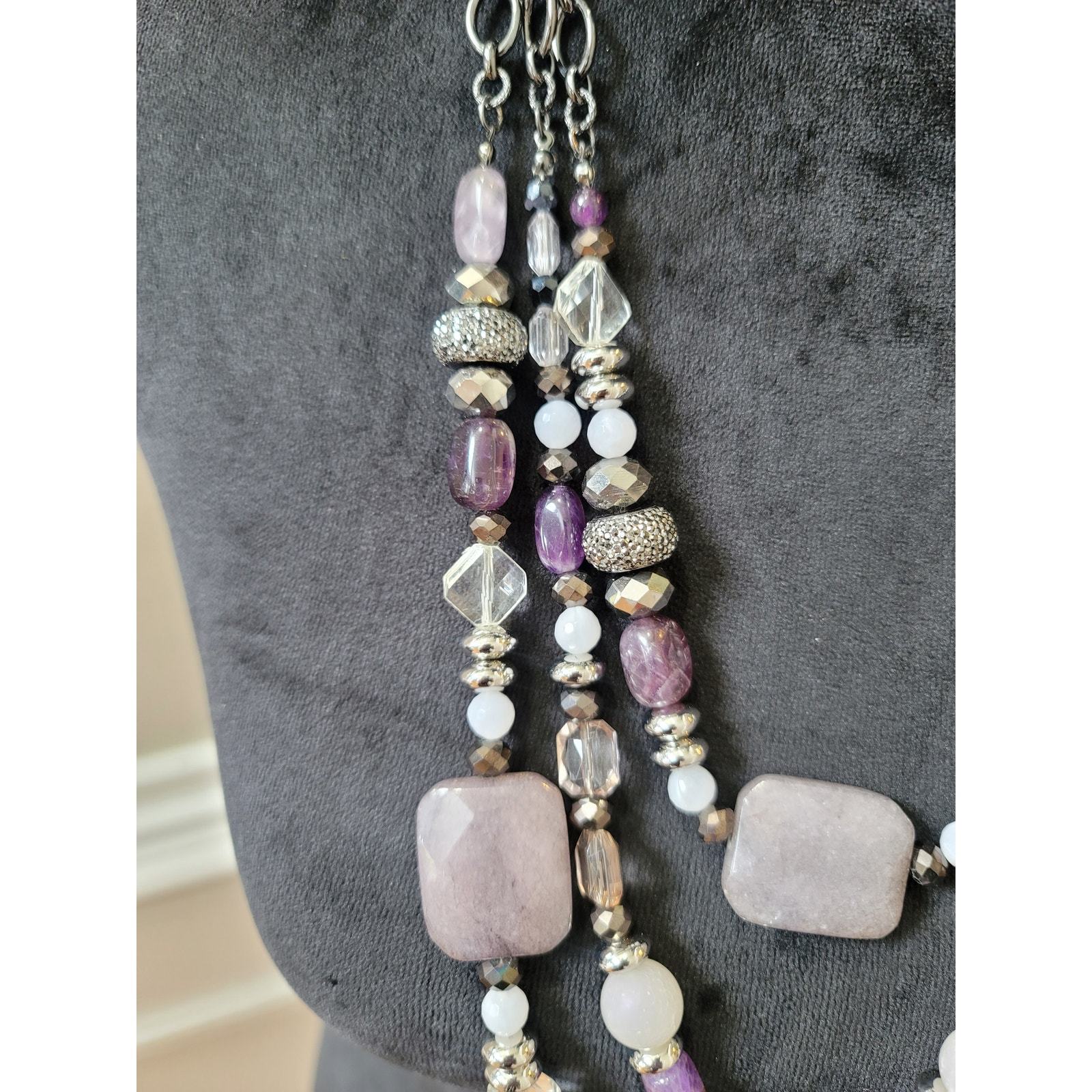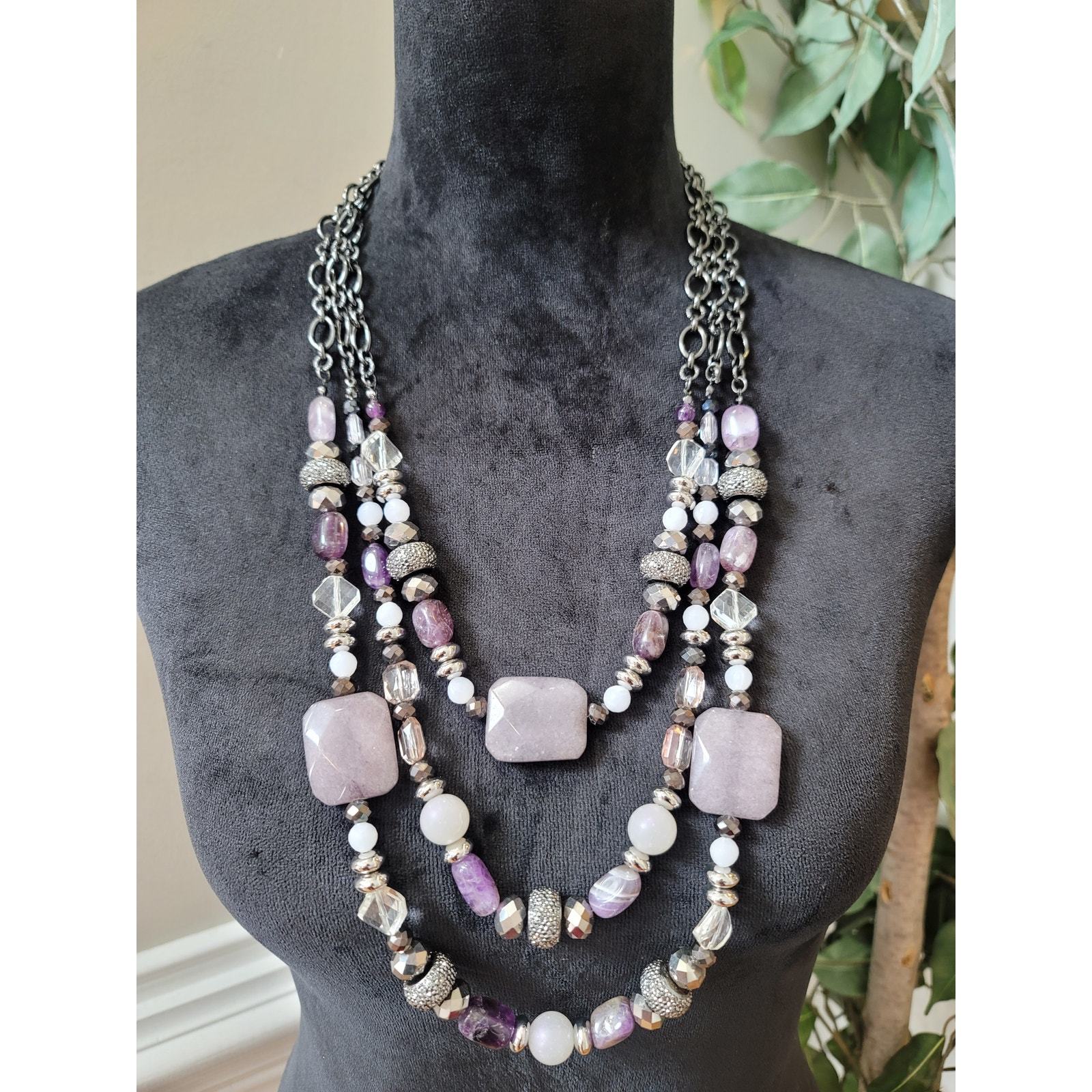 Women's Chicos Multi Strand Statement Necklace Purple Beaded Layered Fashion