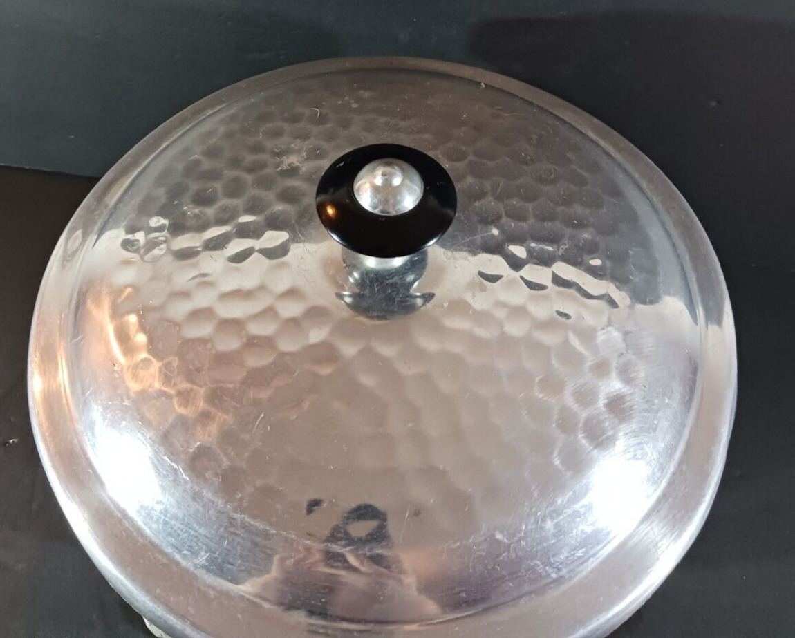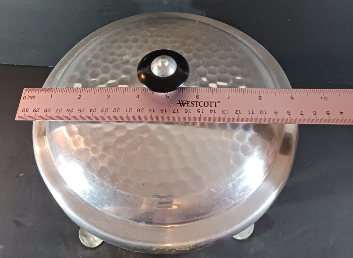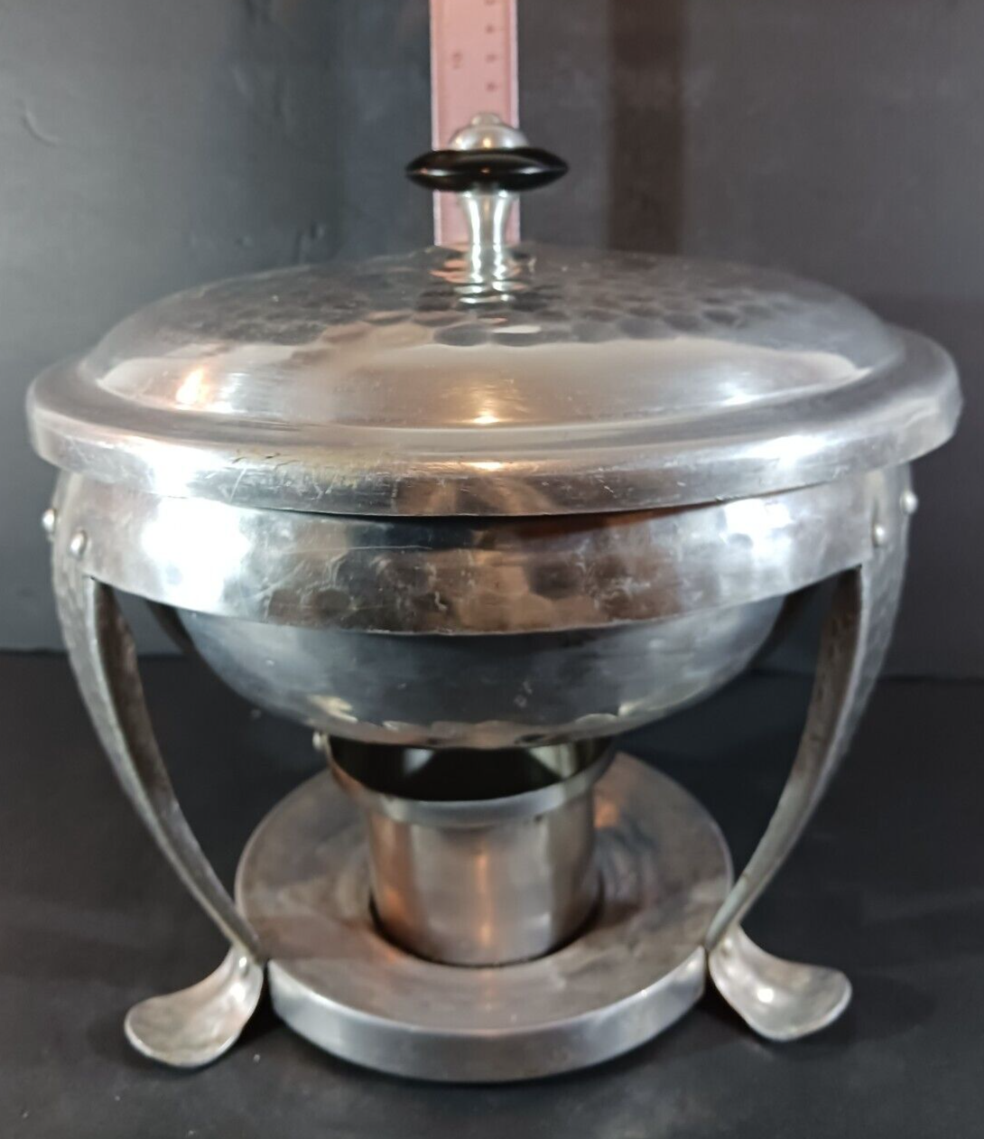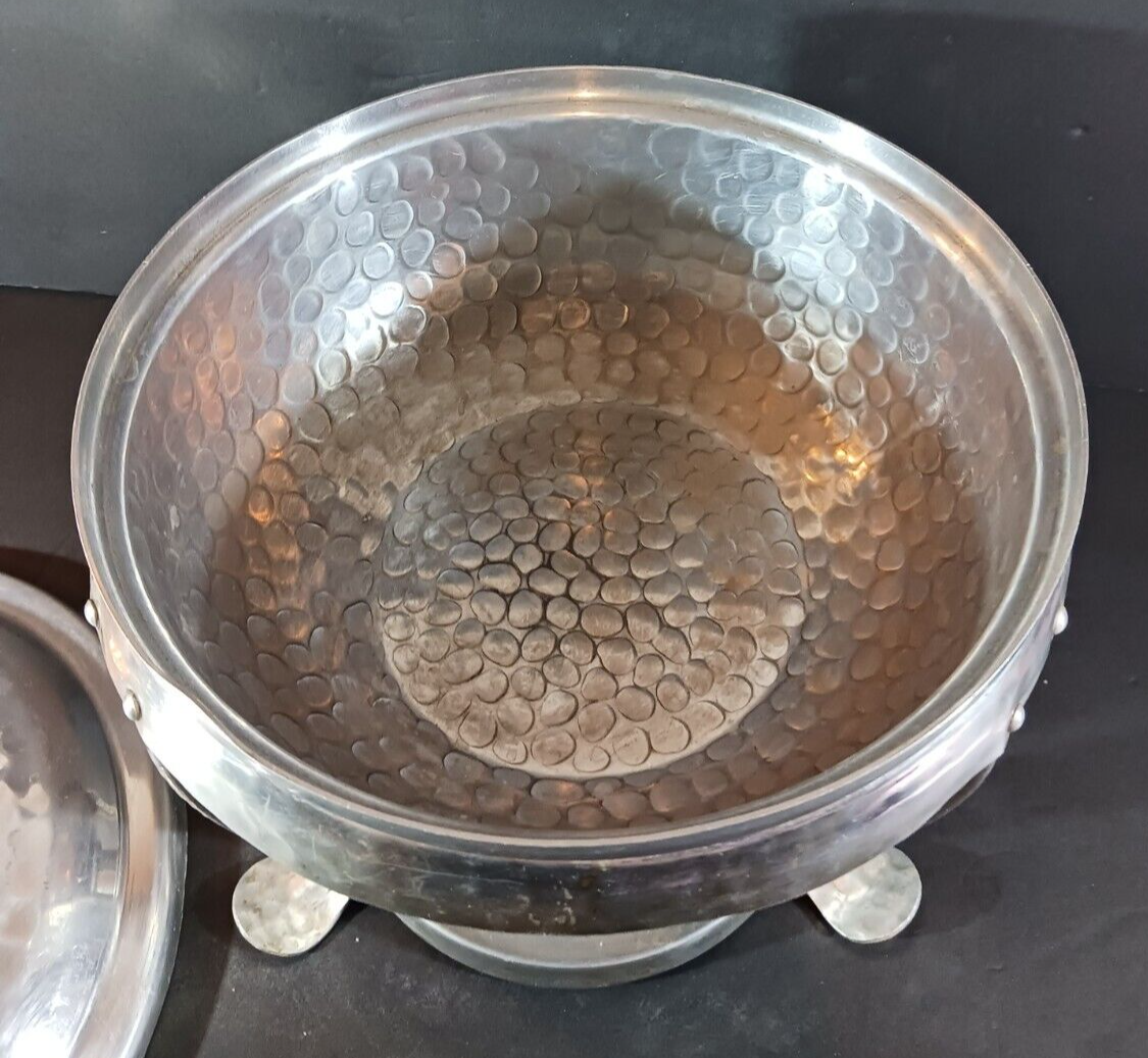 CHAFING DISH HAMMERED ALUMINUM Warming Serving Marked SPAIN Bowl w Lid Vintage