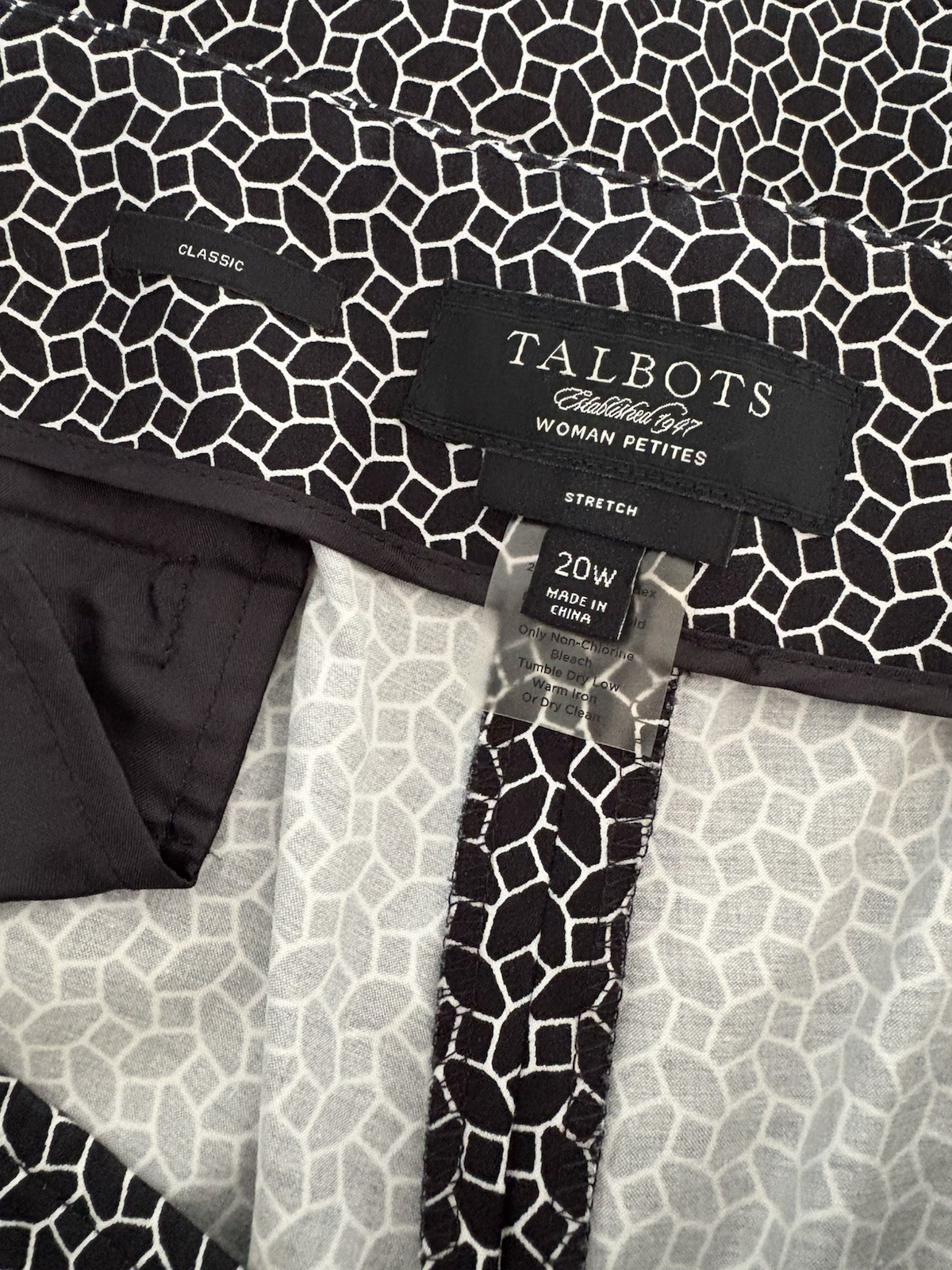 Talbots Woman Petites Classic Stretch Black & White Print Pants Size 20W