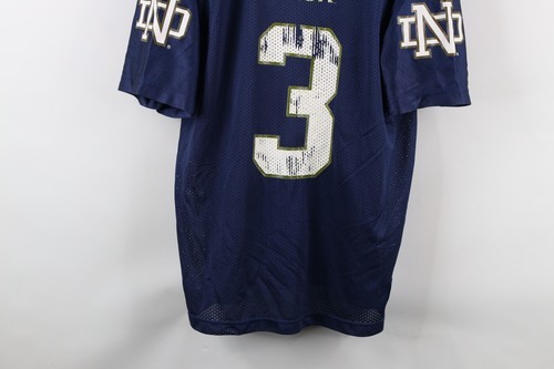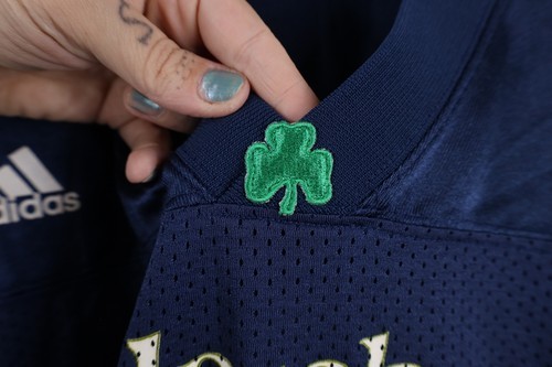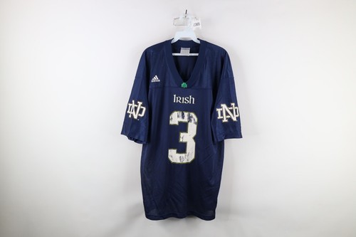 Vintage Adidas Mens Large Distressed Notre Dame University Football Jersey Blue