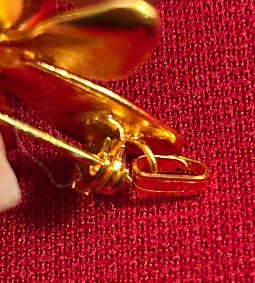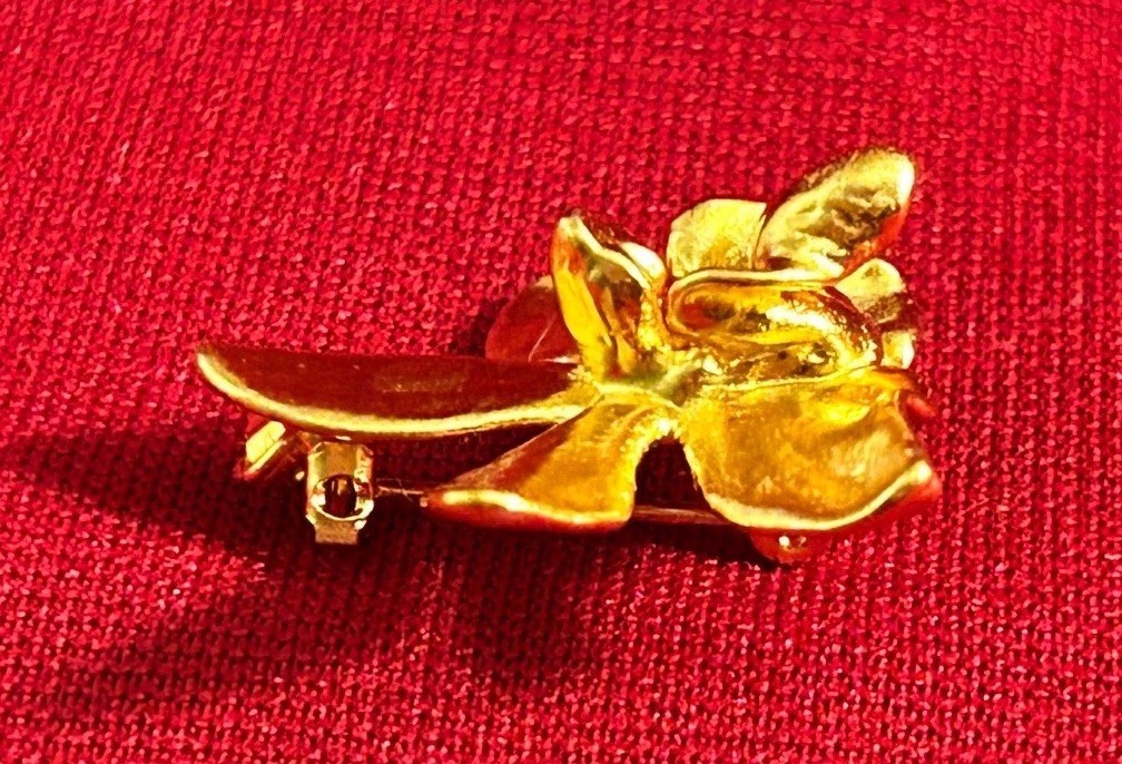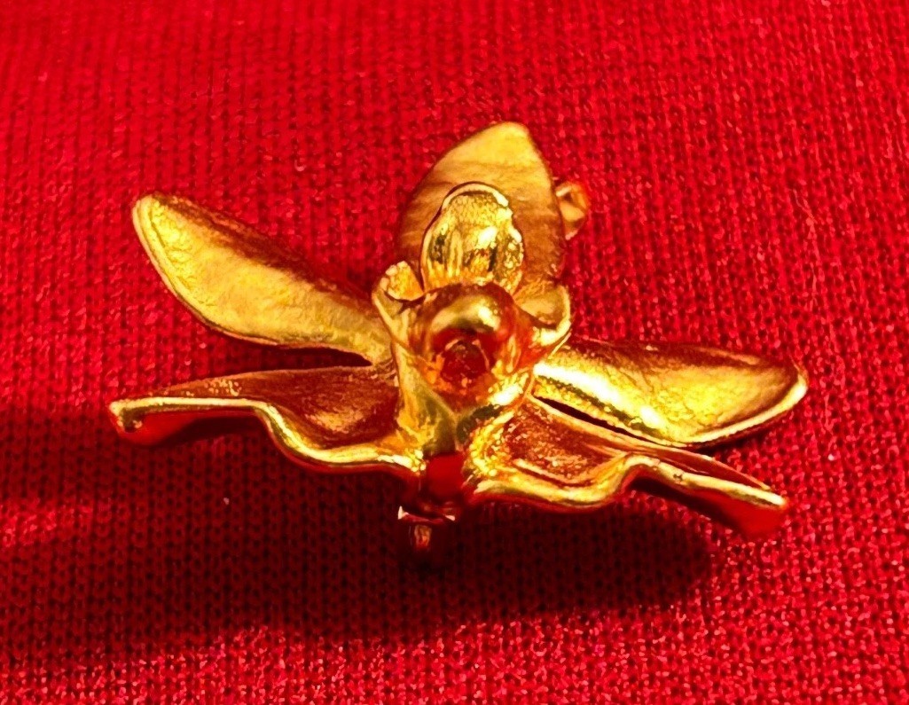 VTG Risis Singapore Orchid Pin Pendant Brooch Floral flower 22k Gold Plated 22GP